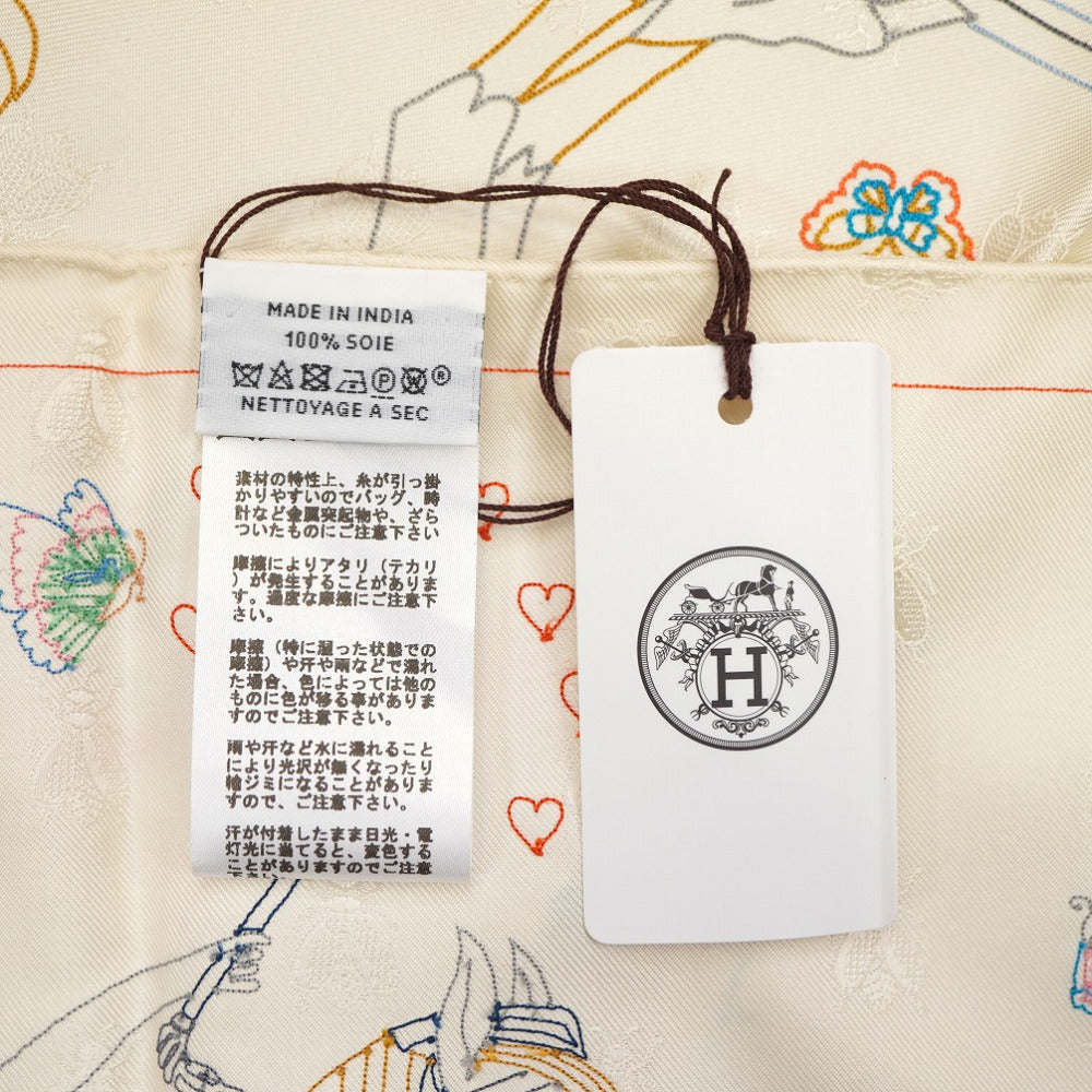 HERMES scarf silk Ivory hermes story Triangle scarf Carre Women Used Authentic