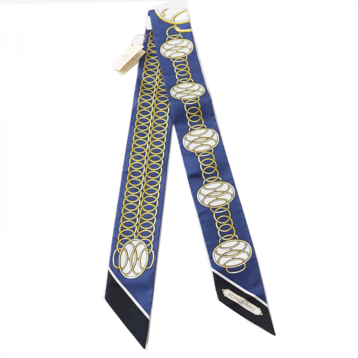 HERMES scarf Main: 100% silk Marine/Black/Gold Twilly Lift Profile Lift Profile Women Used Authentic