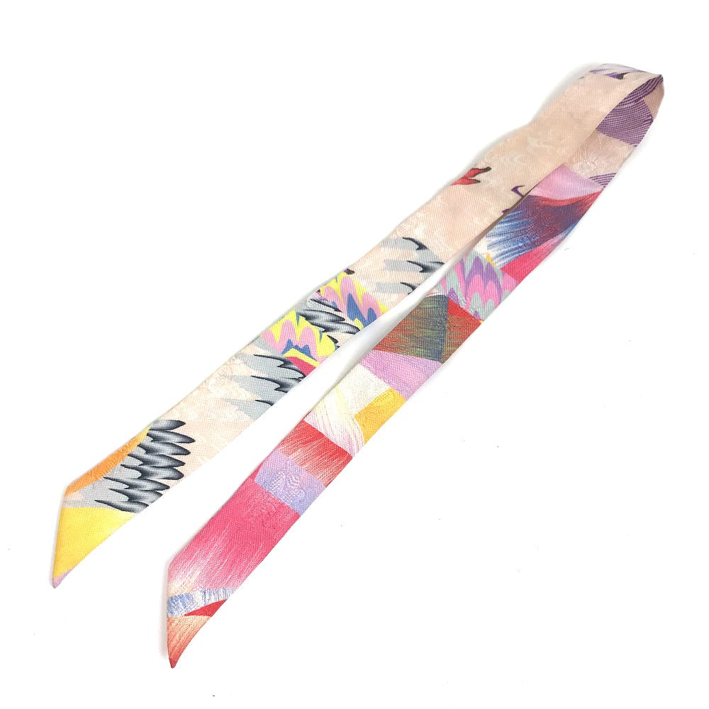 HERMES scarf silk multicolor ALLOVER MARBLE SILK Twilly Doll Women Used Authentic