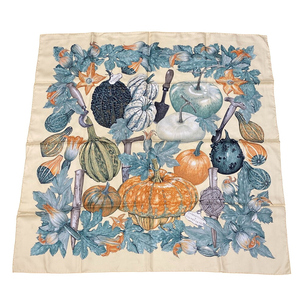 HERMES scarf silk multicolor Carre90 Pumpkin and colocynth Women Used Authentic