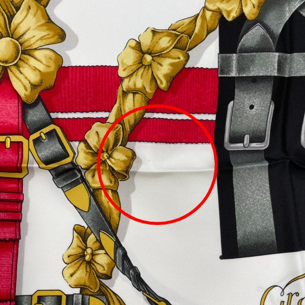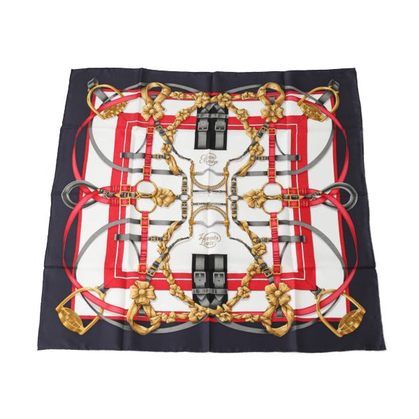 HERMES scarf silk Navy big training Carre90 Crano Manege Women Used Authentic