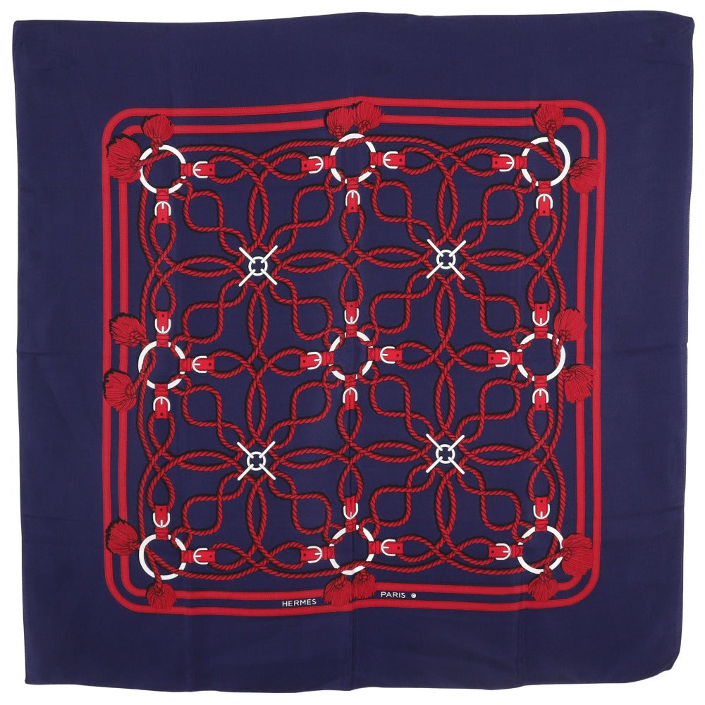 HERMES scarf silk Navy blue / red Rope Pattern Carre Women Used Authentic