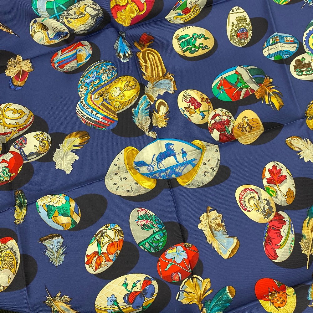 HERMES scarf silk Navy Hermes egg Carre90 Women Used Authentic