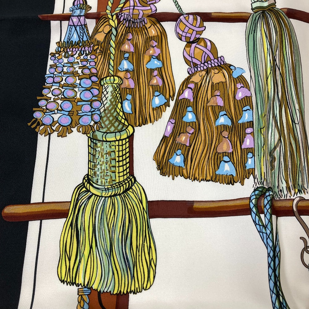 HERMES scarf silk Navy Pasementerie string decoration Carre90 Women Secondhand Authentic