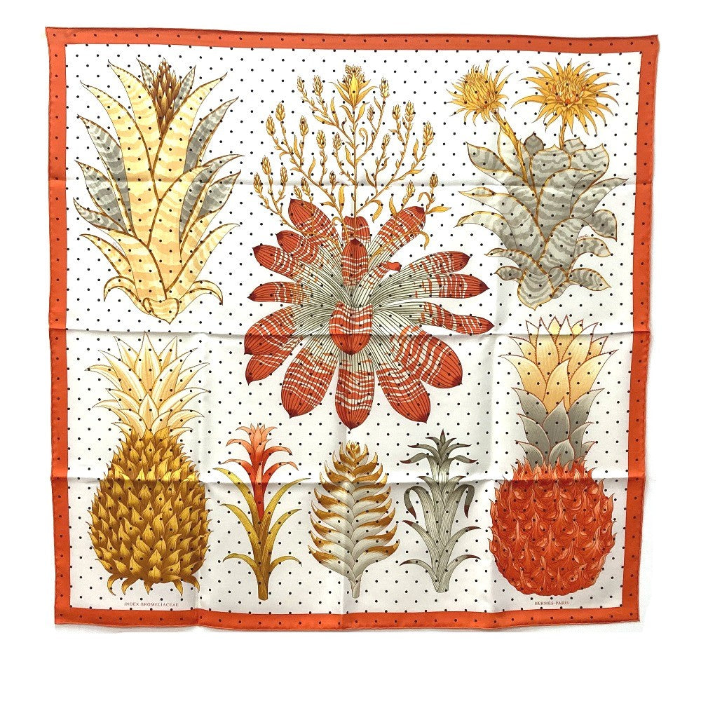 HERMES scarf silk Orange Index Bromeliaceae Bromeliad Catalog scarf Women Used Authentic