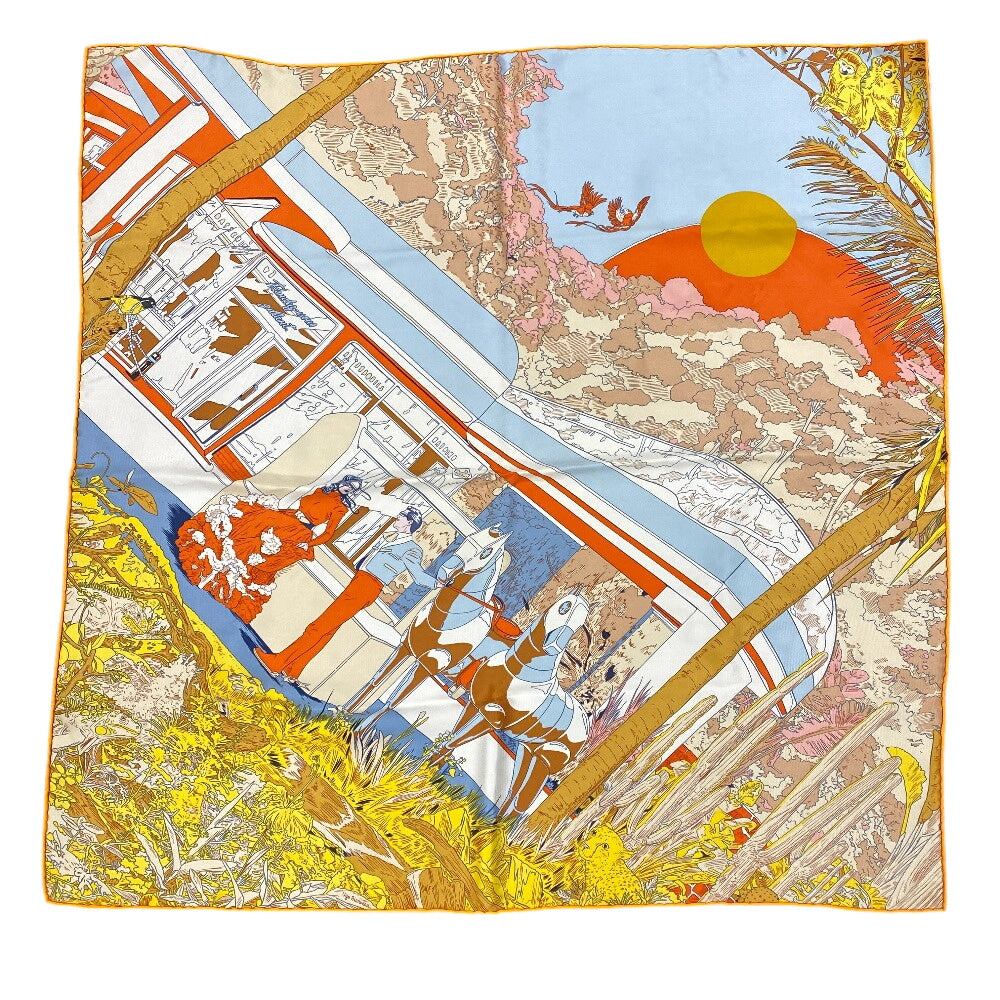 HERMES scarf silk Orange Rendez Vous Galant Carre70 Women Used Authentic
