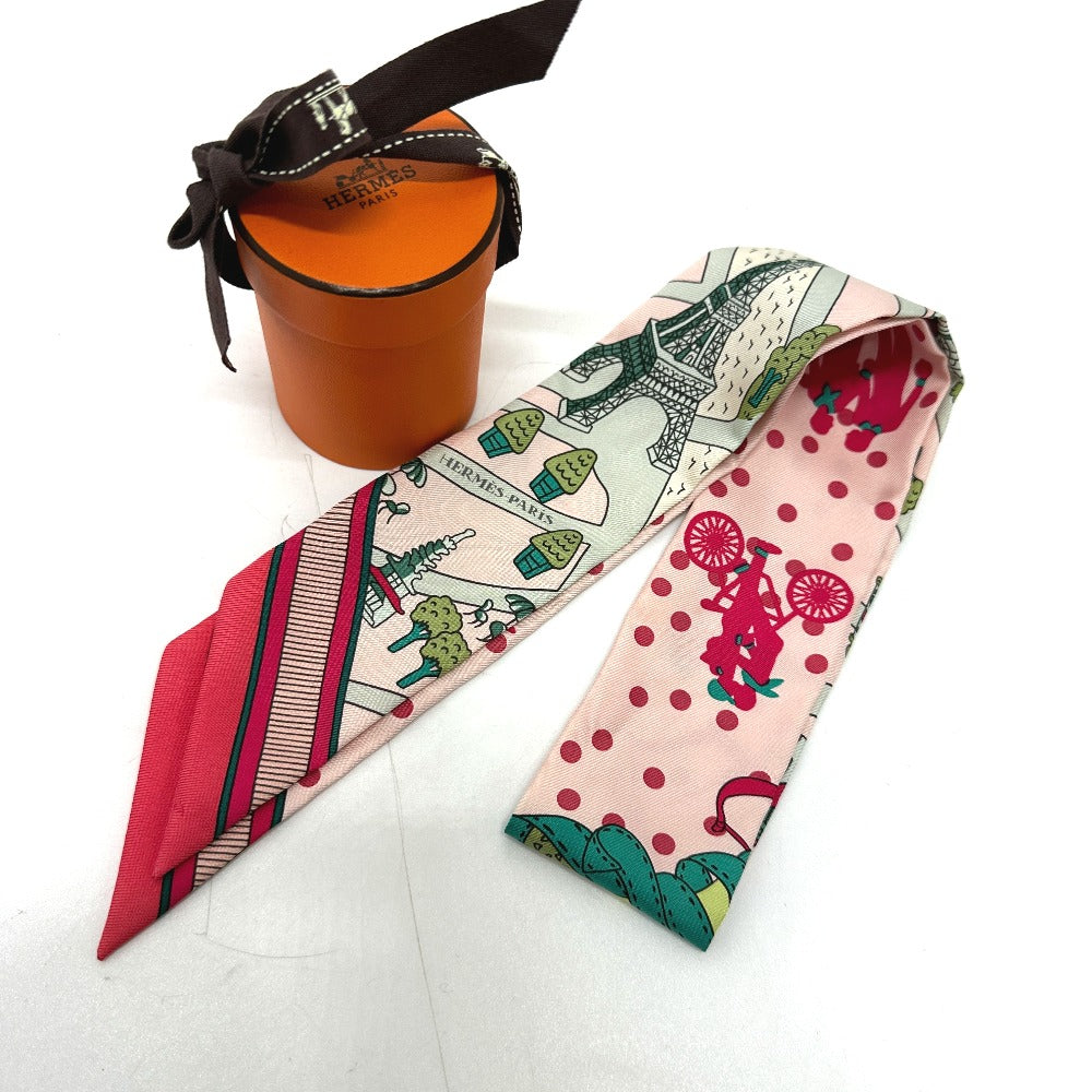 HERMES scarf silk pink Twilly Women Used Authentic