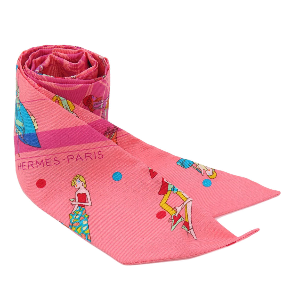 HERMES scarf silk pink Twilly Women Used Authentic