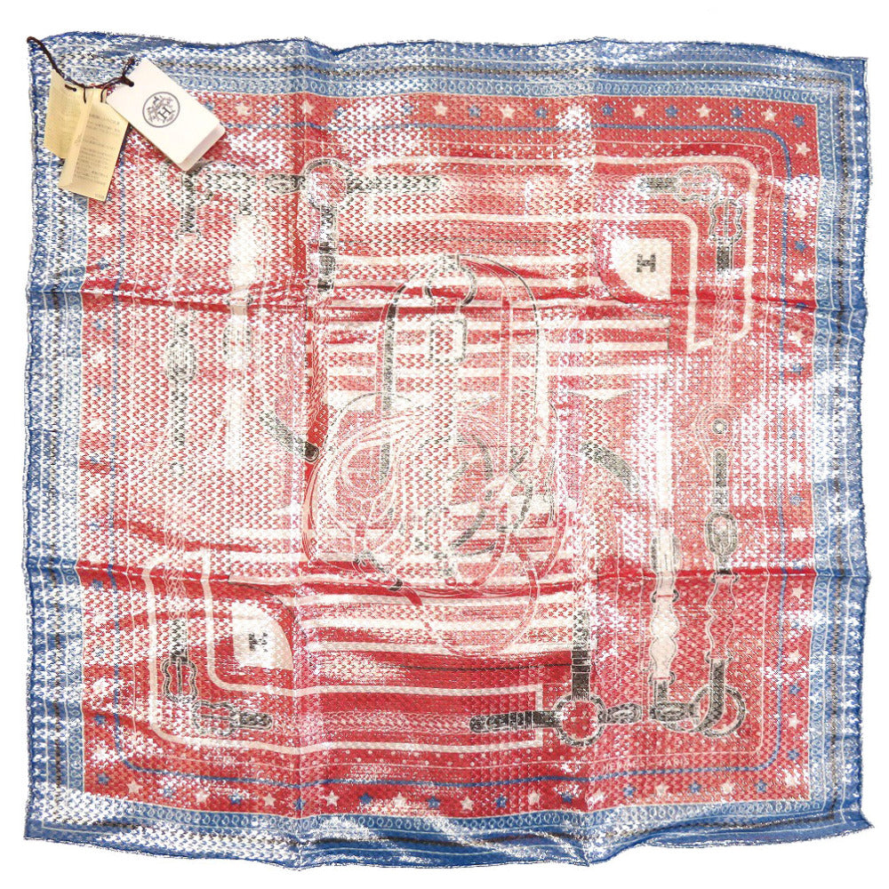 HERMES scarf silk Red Carre55 Bandana Disco Coaching unisex(Unisex) Used Authentic