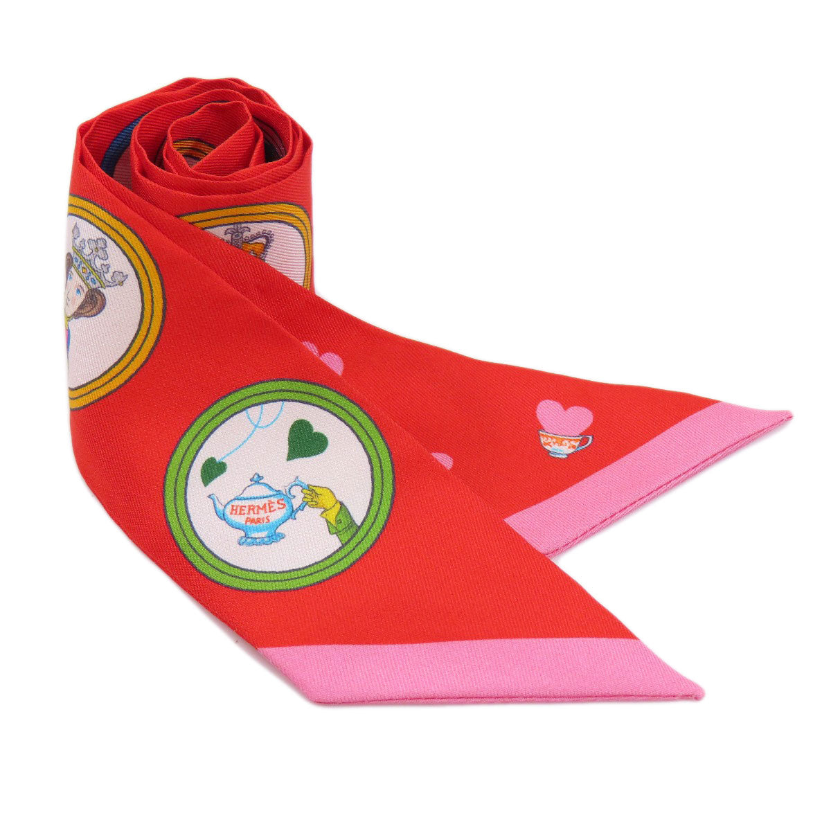 HERMES scarf silk Red Twilly Women Used Authentic