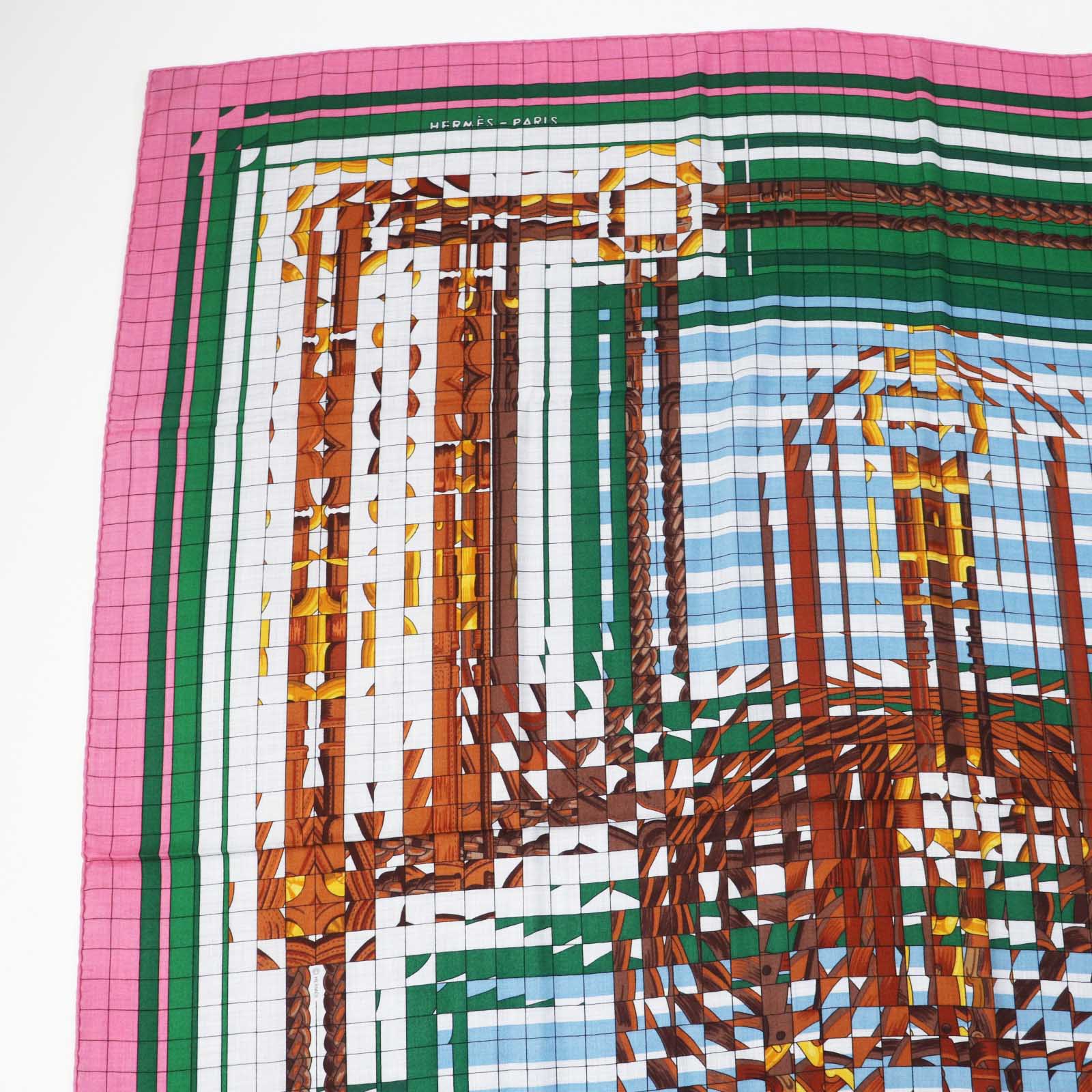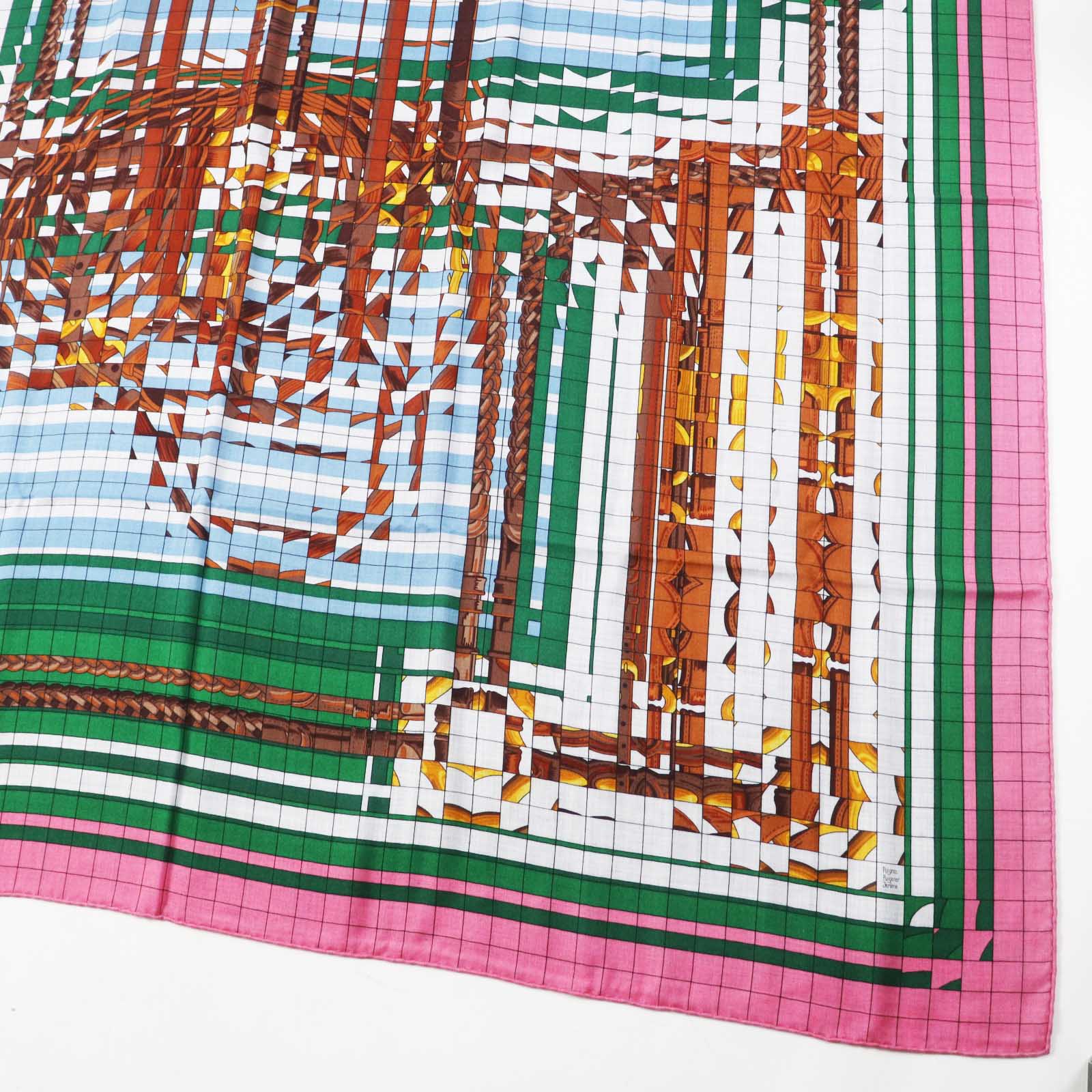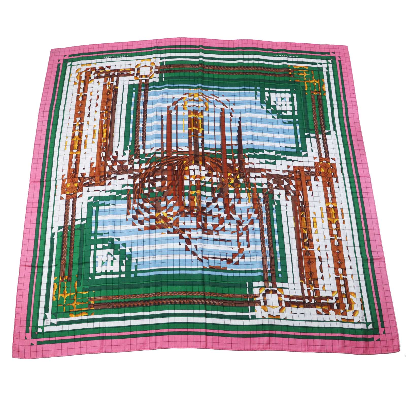 HERMES scarf silk Rose Bonbon/Emerald Carre140 Caregean coaching deja vu Women Used Authentic