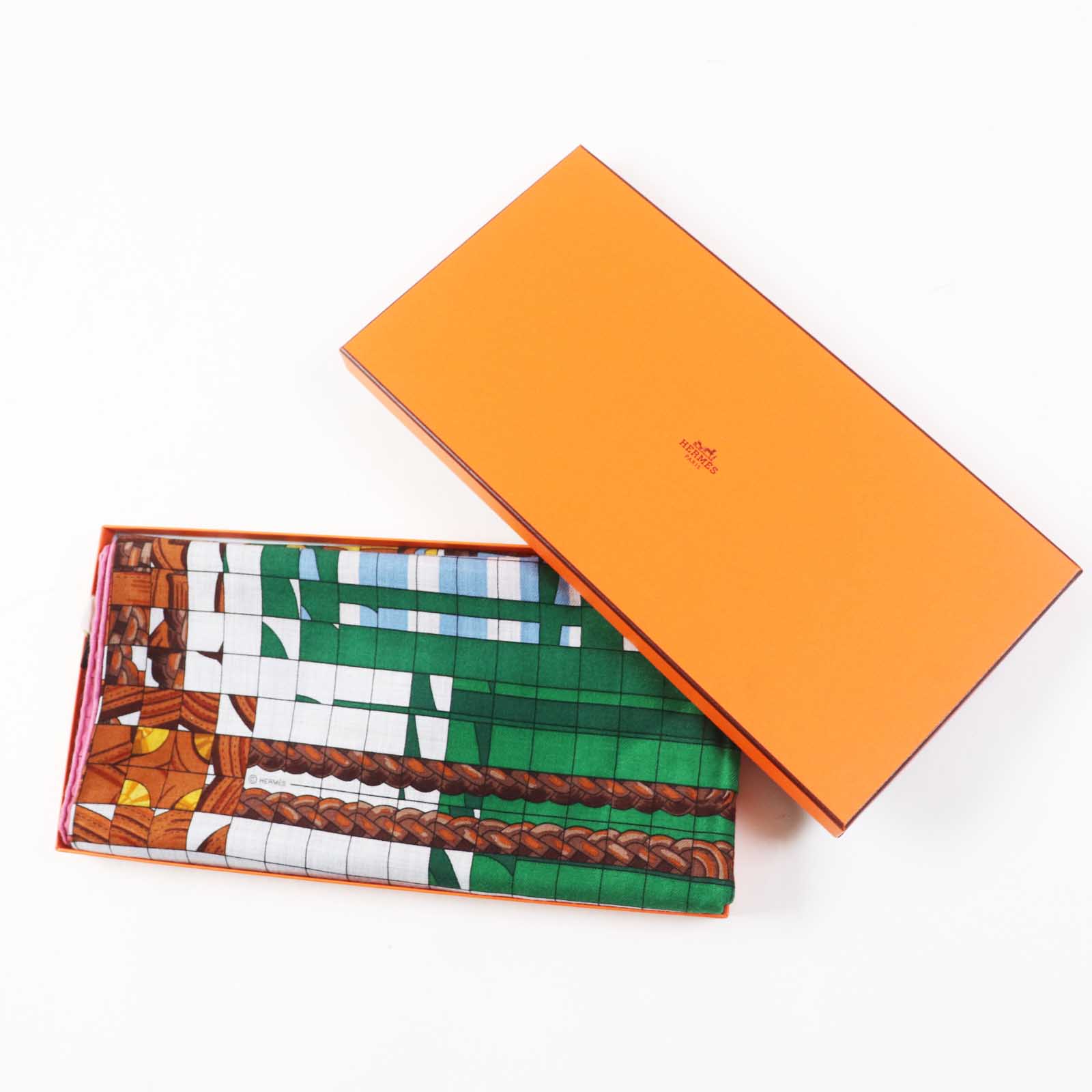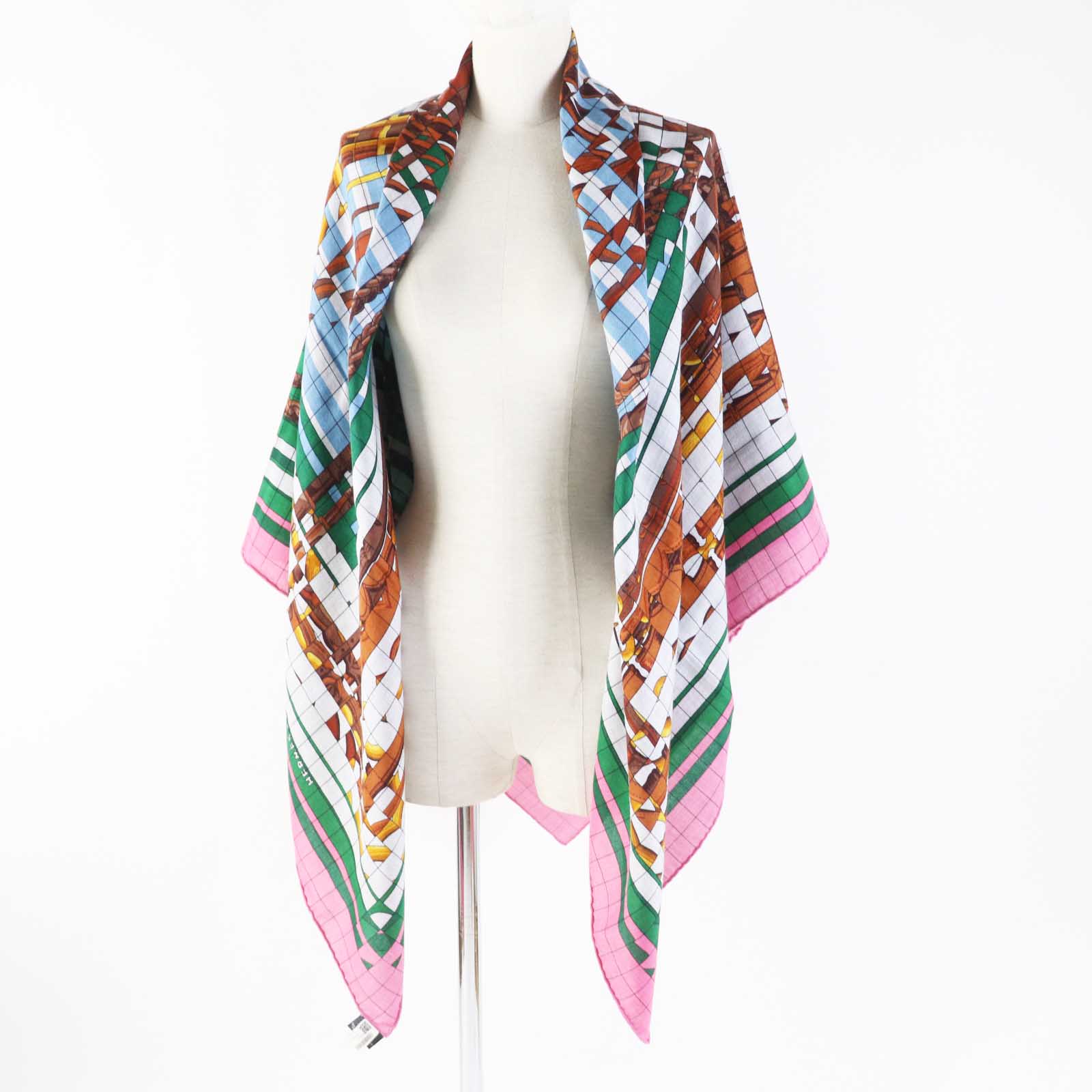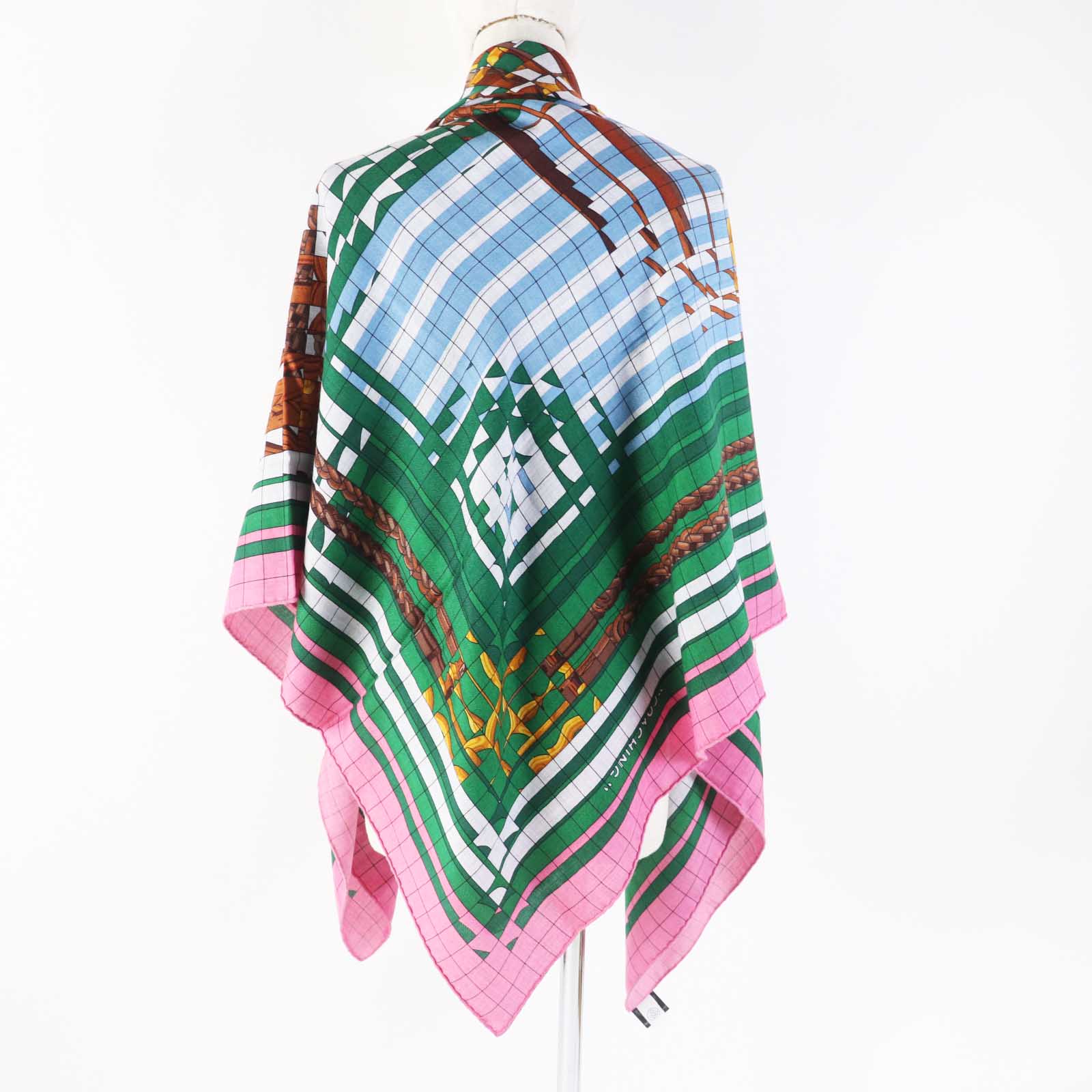 HERMES scarf silk Rose Bonbon/Emerald Carre140 Caregean coaching deja vu Women Used Authentic