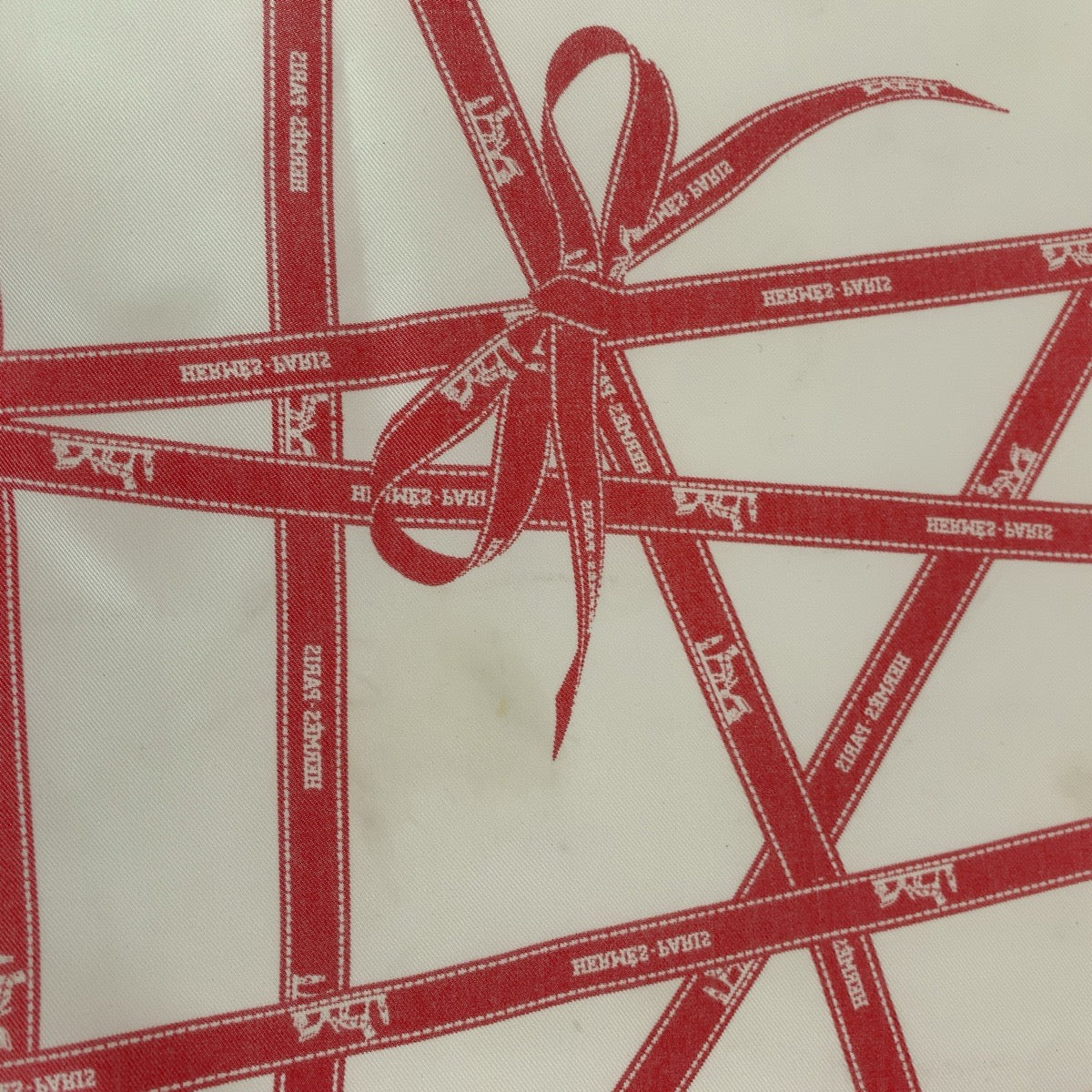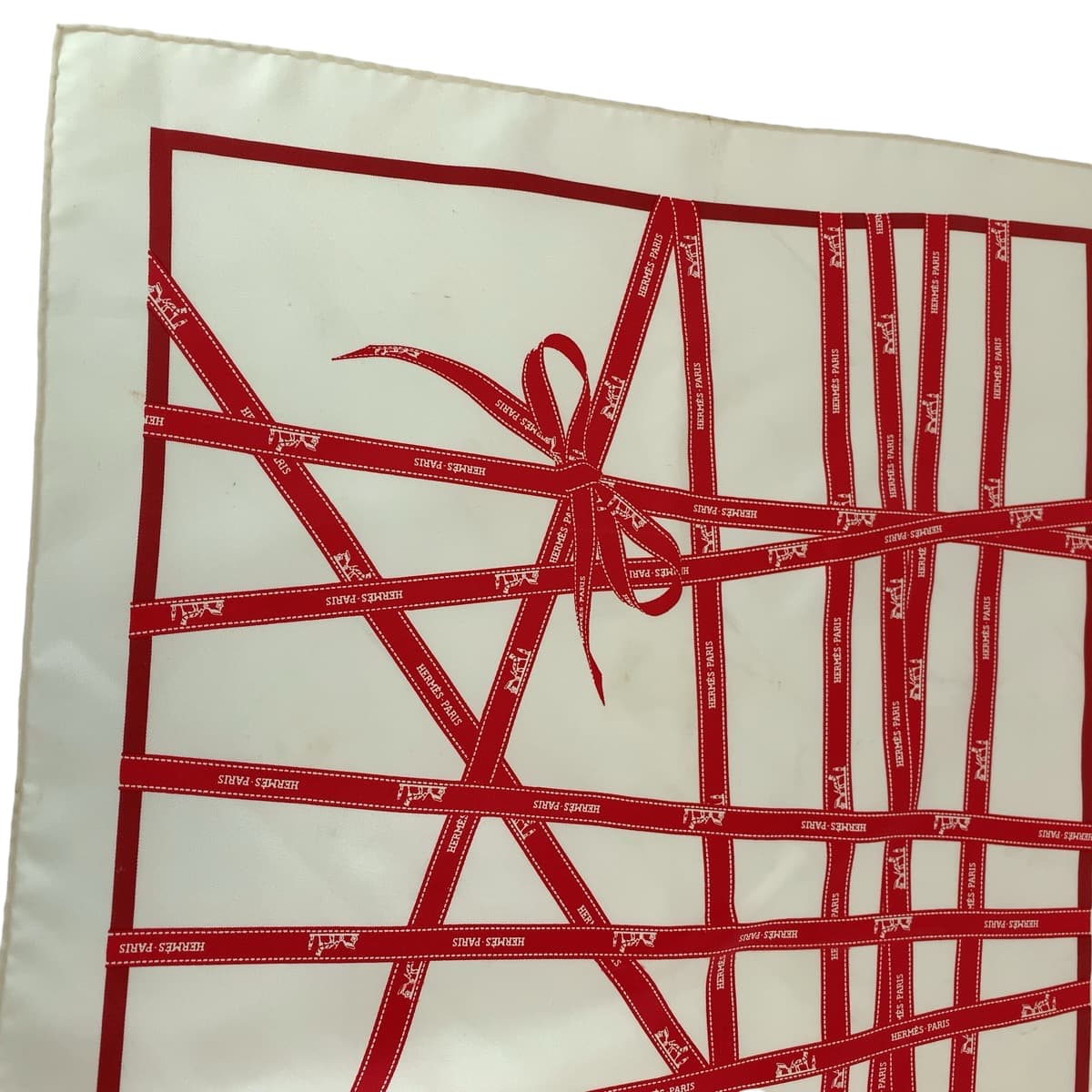 HERMES scarf silk white Carre45 Bolduc au Carre