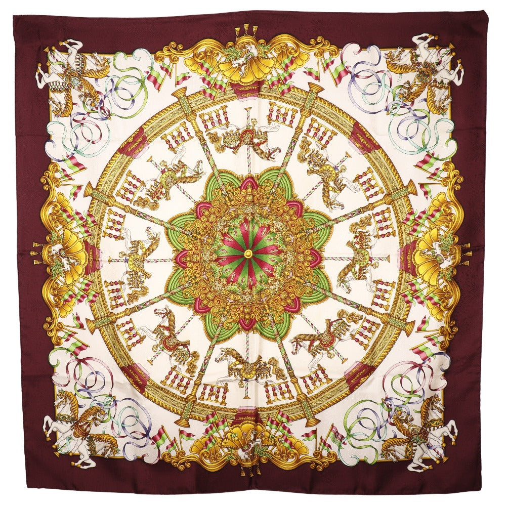 HERMES scarf silk wine-red LUNA PARK amusement park Carre90 Women Used Authentic