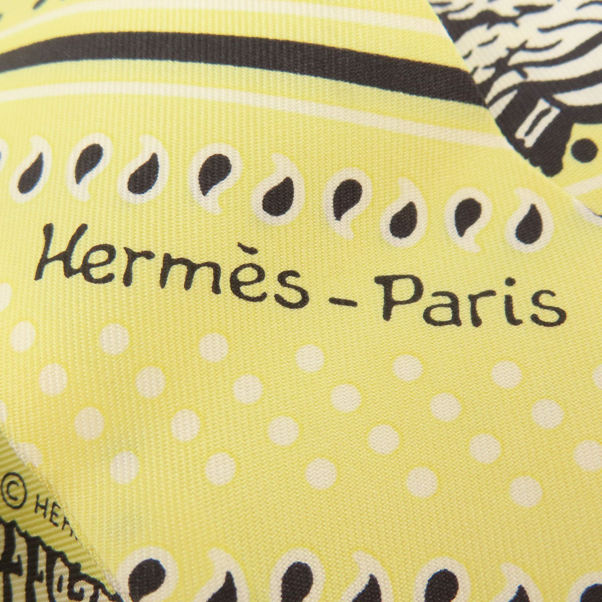 HERMES scarf silk yellow Twilly zebra motif Women Used Authentic