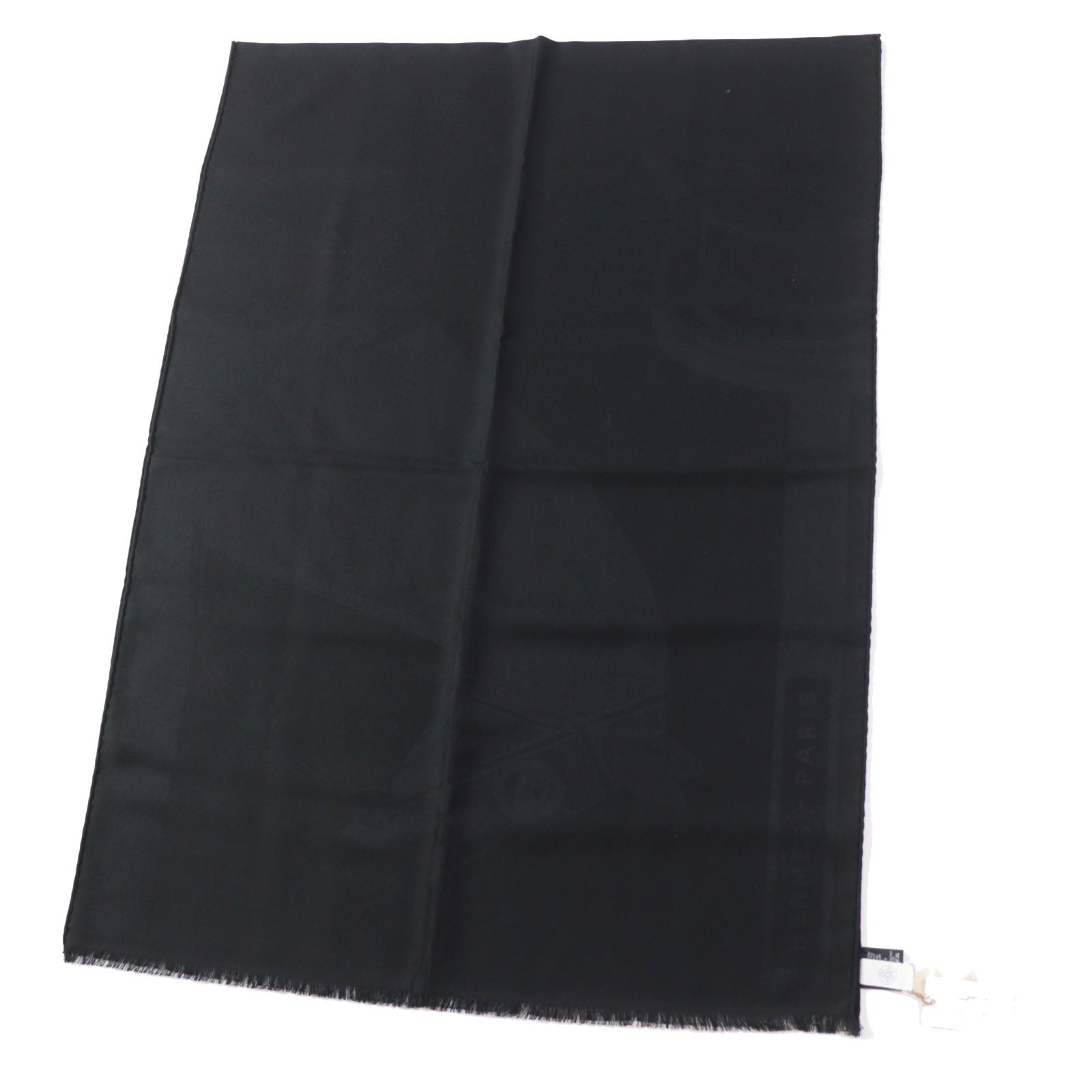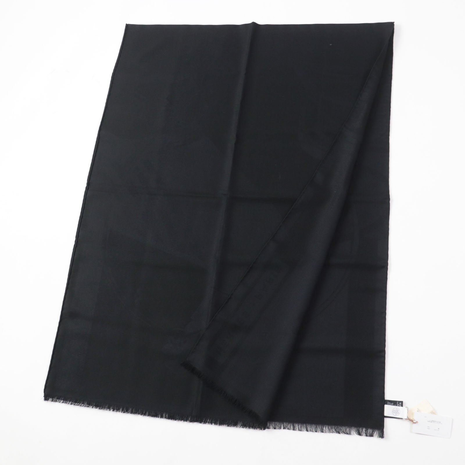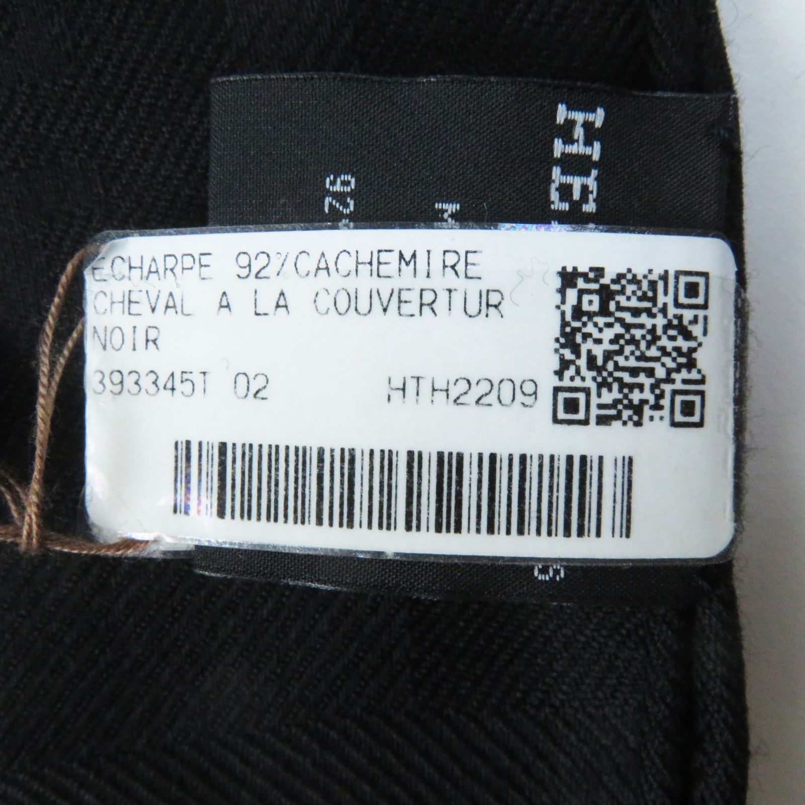 HERMES shawl Main: 92% cashmere, Main: 8% silk black Cheval a la Couverture Rectangle Horse Blanket Women Used Authentic