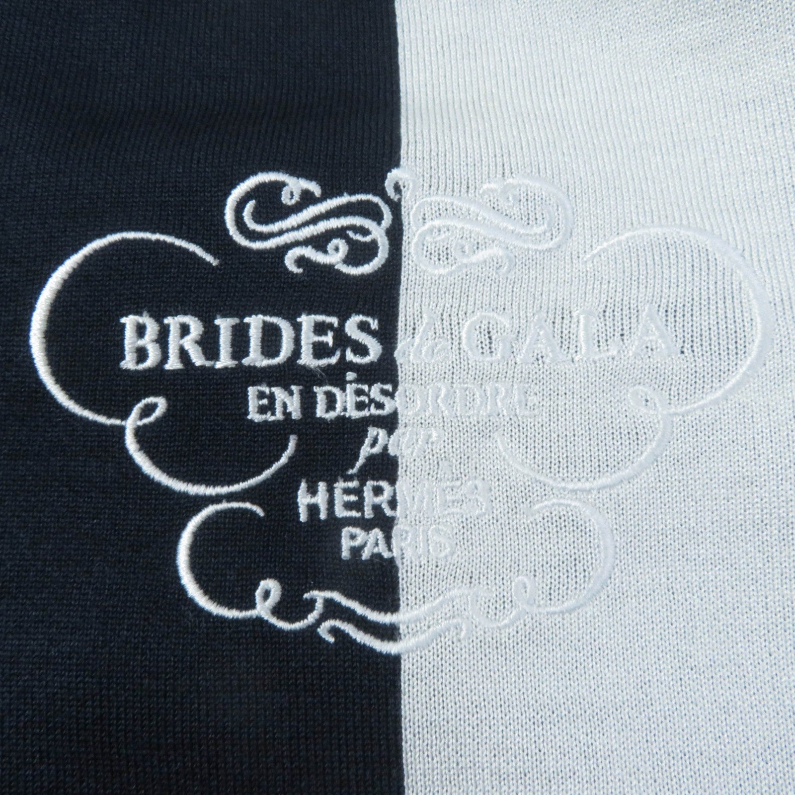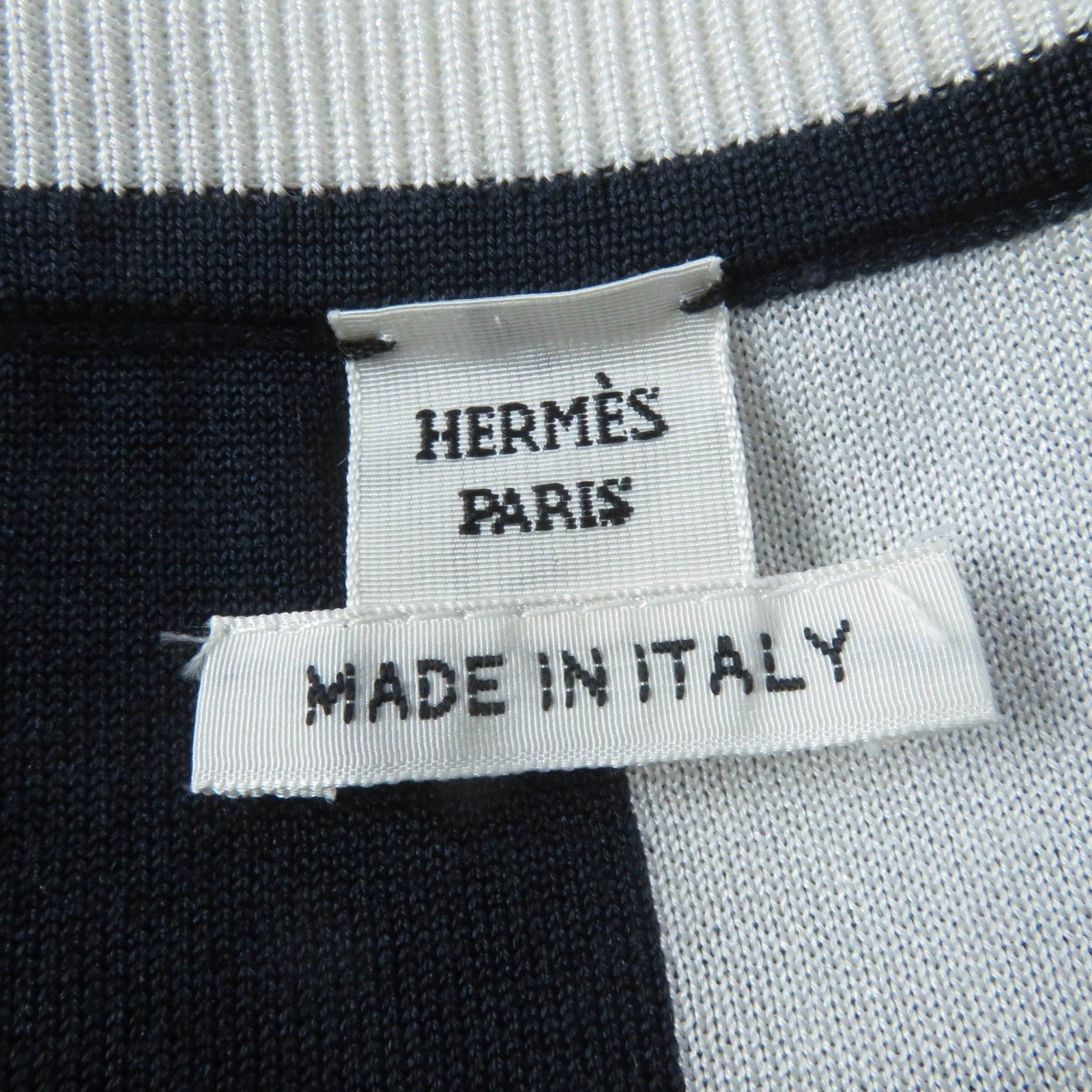 HERMES Short sleeve knit 4E2654D6 silk Navy white Knit jacquard chaos Women 42 Used Authentic