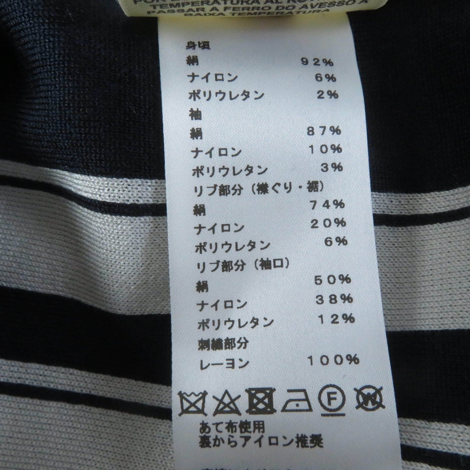 Detailed remarks: Disorder Main (body): 92% silk, 6% nylon, 2% polyurethane Main (sleeve): 87% silk, 10% nylon, 3% polyurethane Ribbed part (neckline, hem): 74% silk, 20% nylon, 6% polyurethane Ribbed part (cuffs): 50% silk, 38% nylon, 12% polyurethane Embroidered part: 100% rayon