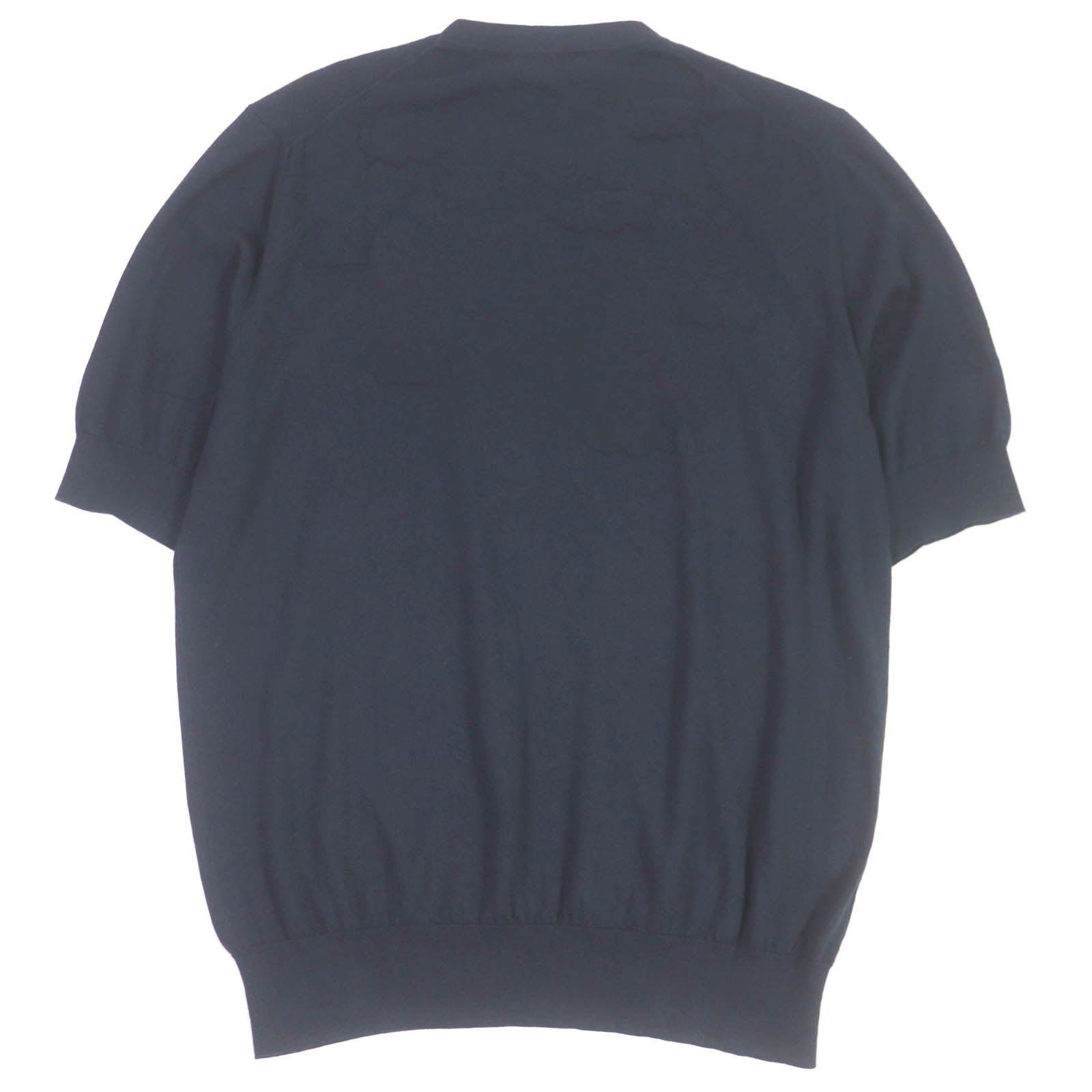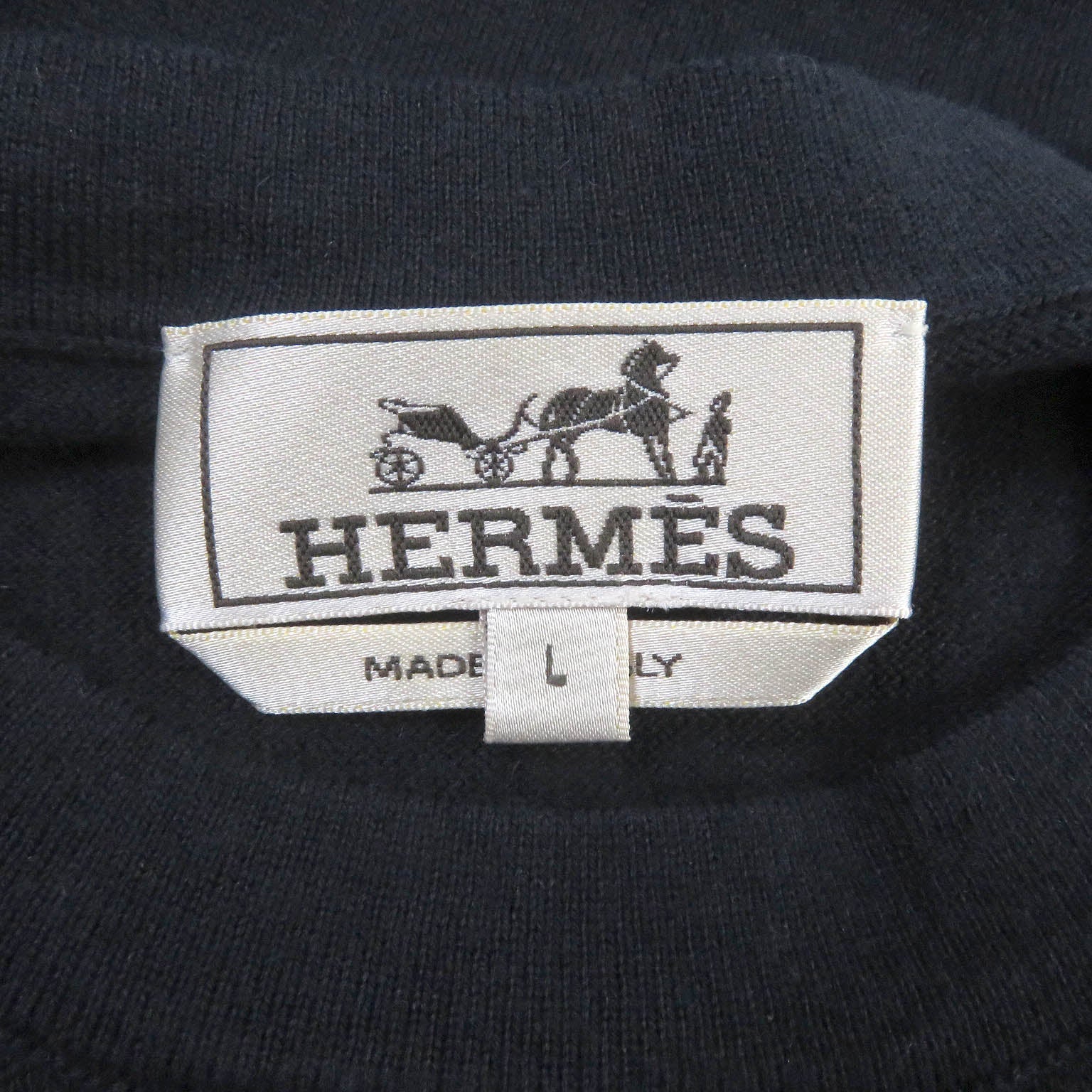 HERMES Short sleeve knit Main: 90% cotton, Main: 10% cashmere Navy mens L Used Authentic