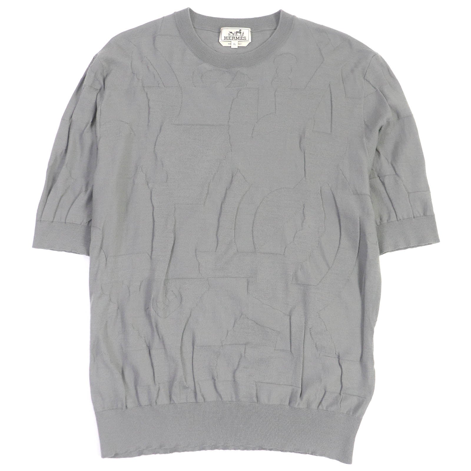 HERMES Short sleeve knit Main: 100% wool gray mens XL Used Authentic