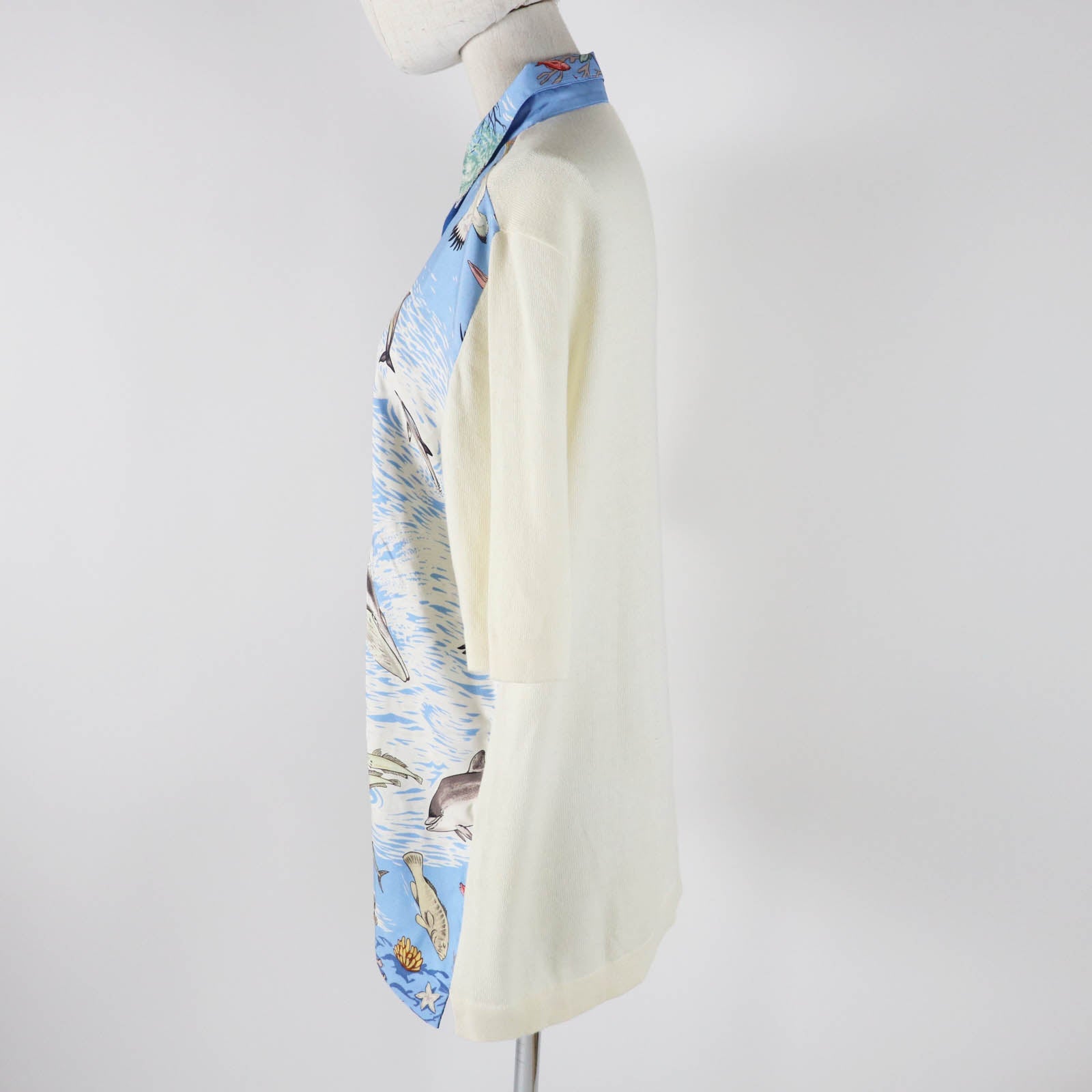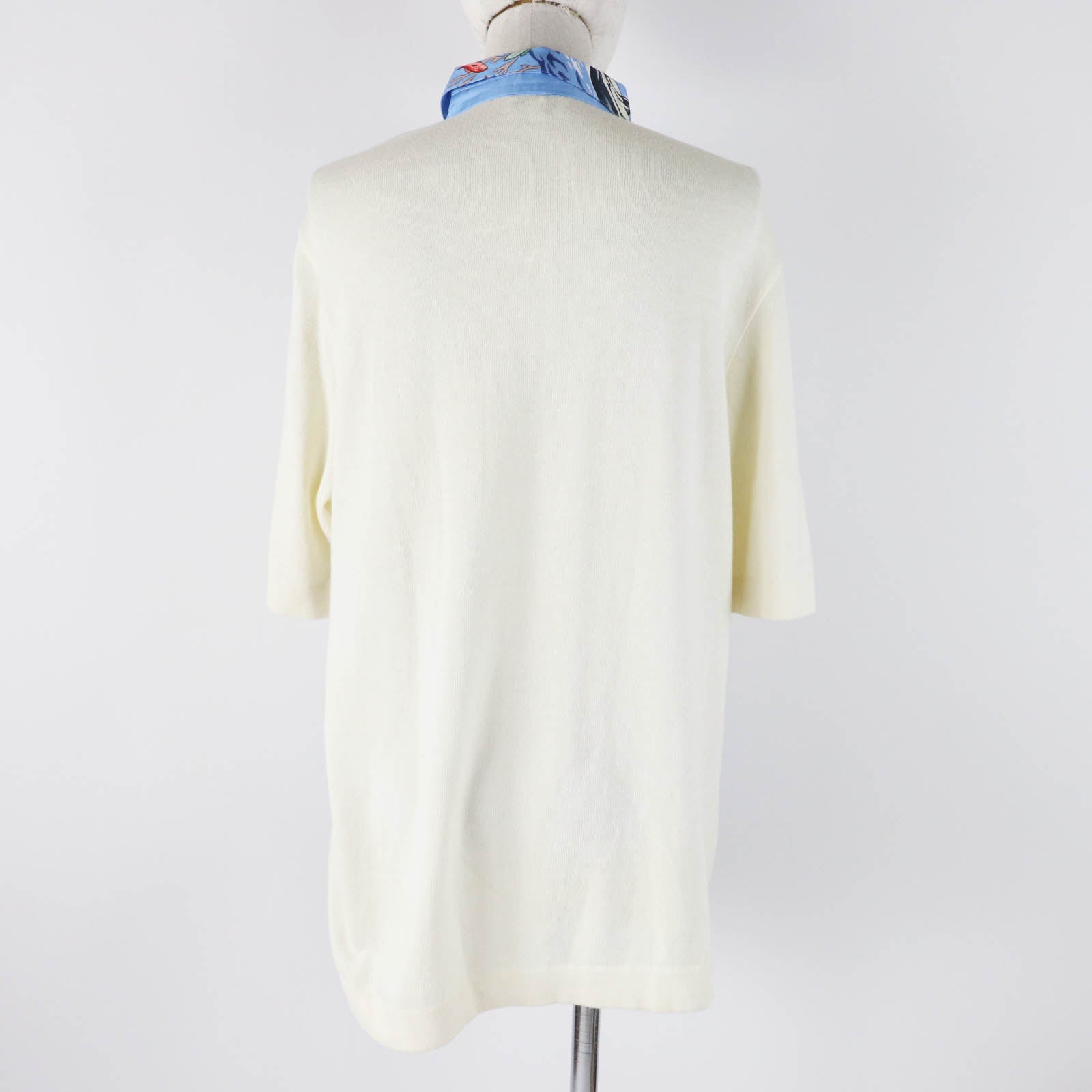 HERMES Short sleeve polo shirt Main: 100% silk, Main: 85% cotton, Main: 15% cashmere Light blue white The Precious Life of the Mediterranean Women M Used Authentic
