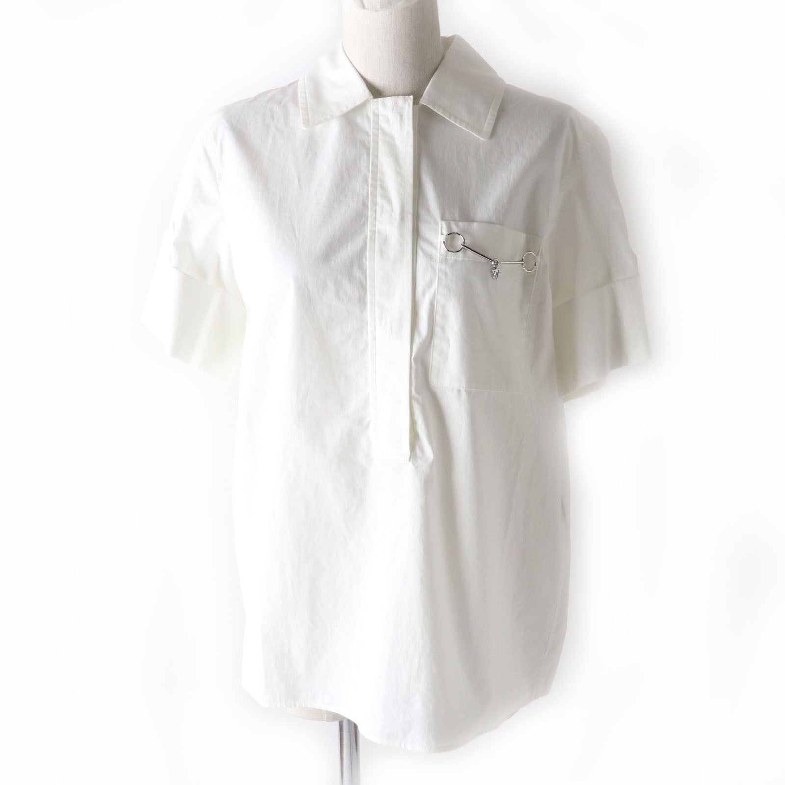 HERMES Short sleeve shirt 2E0607DJ Main: 100% cotton white Women 36 Used Authentic