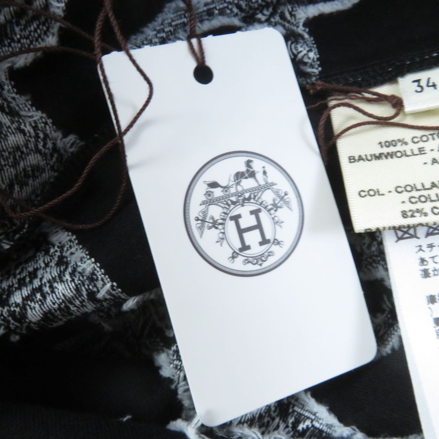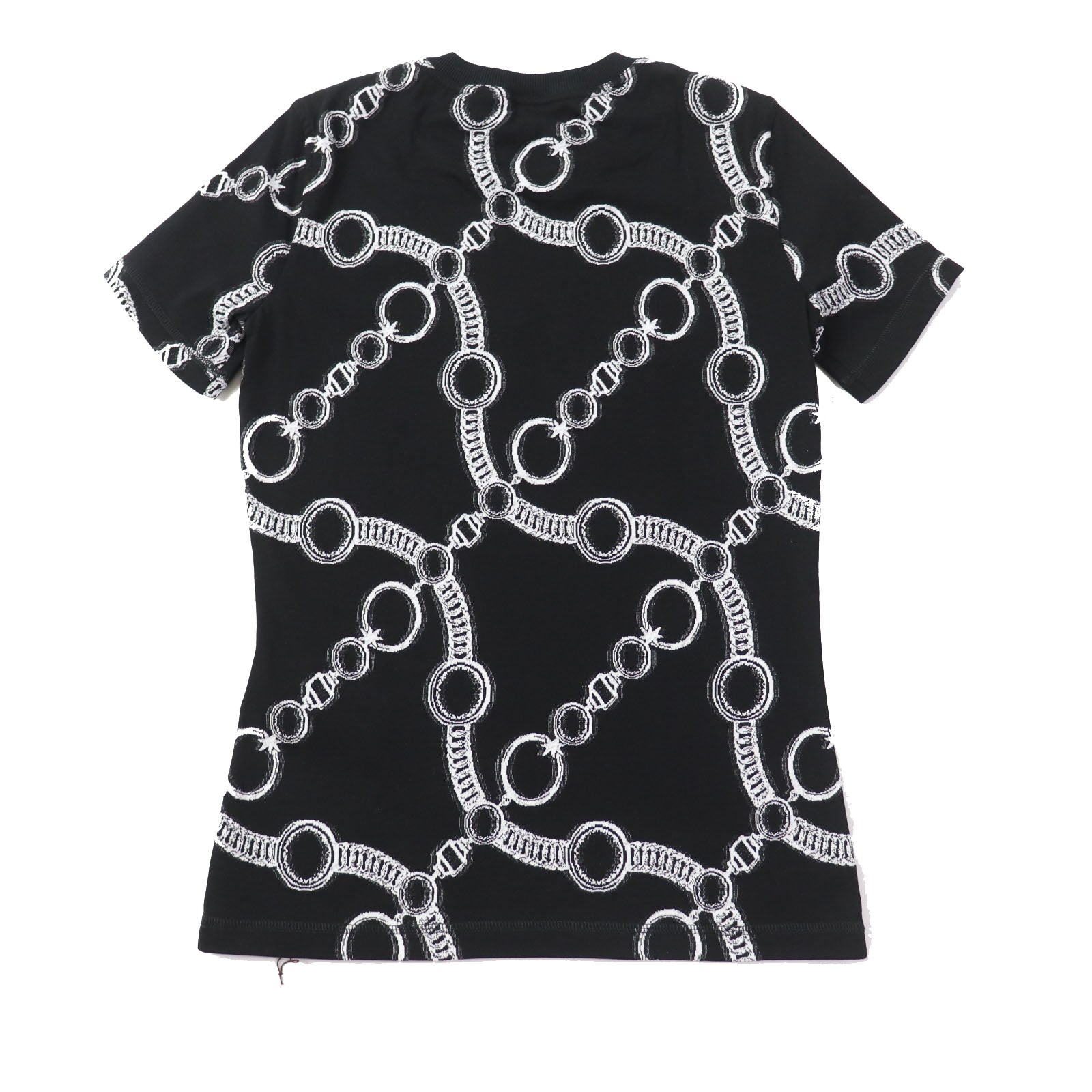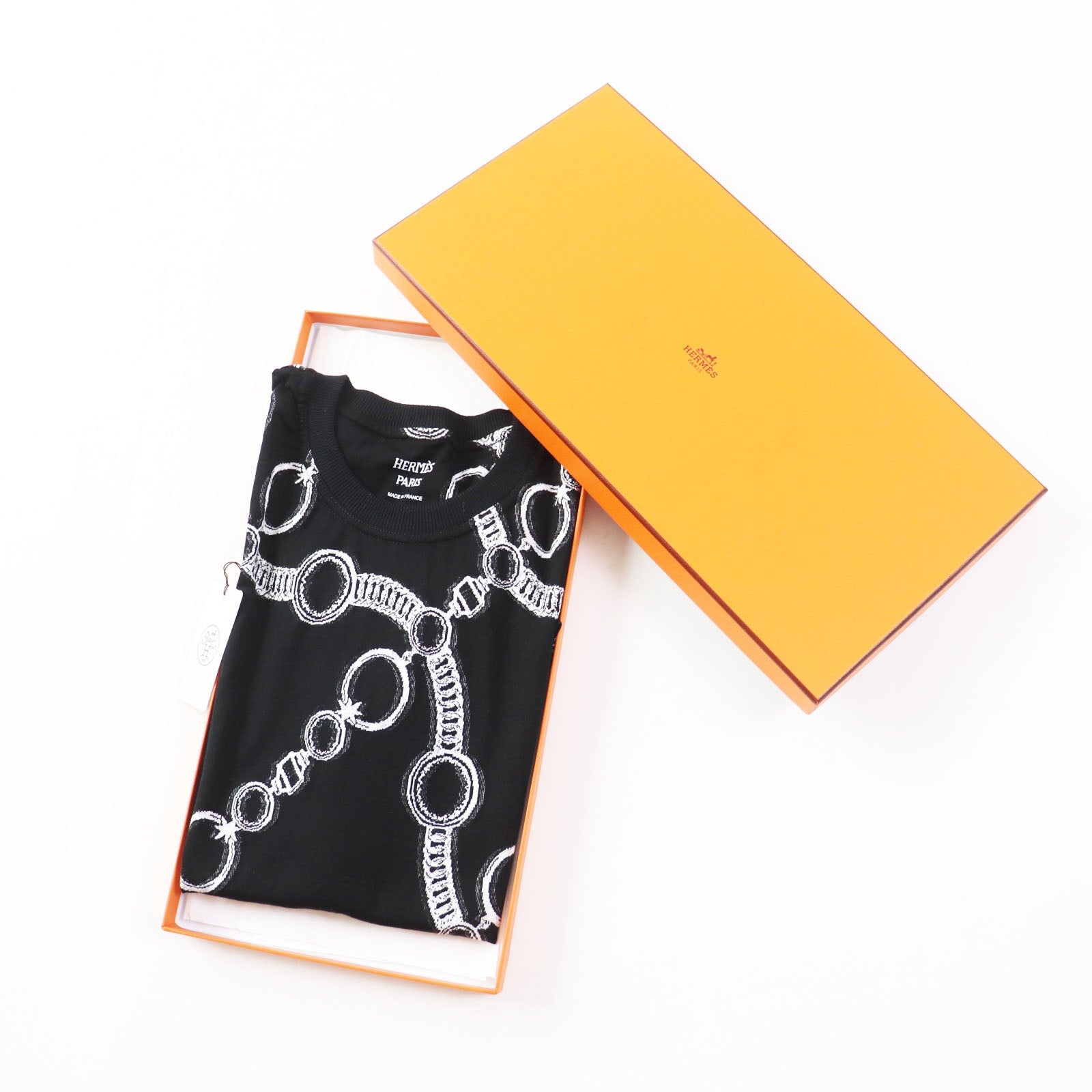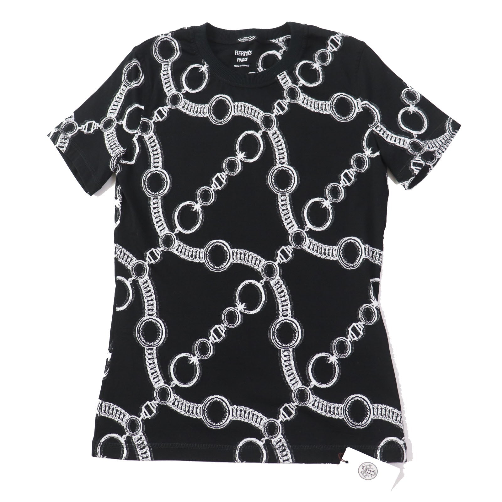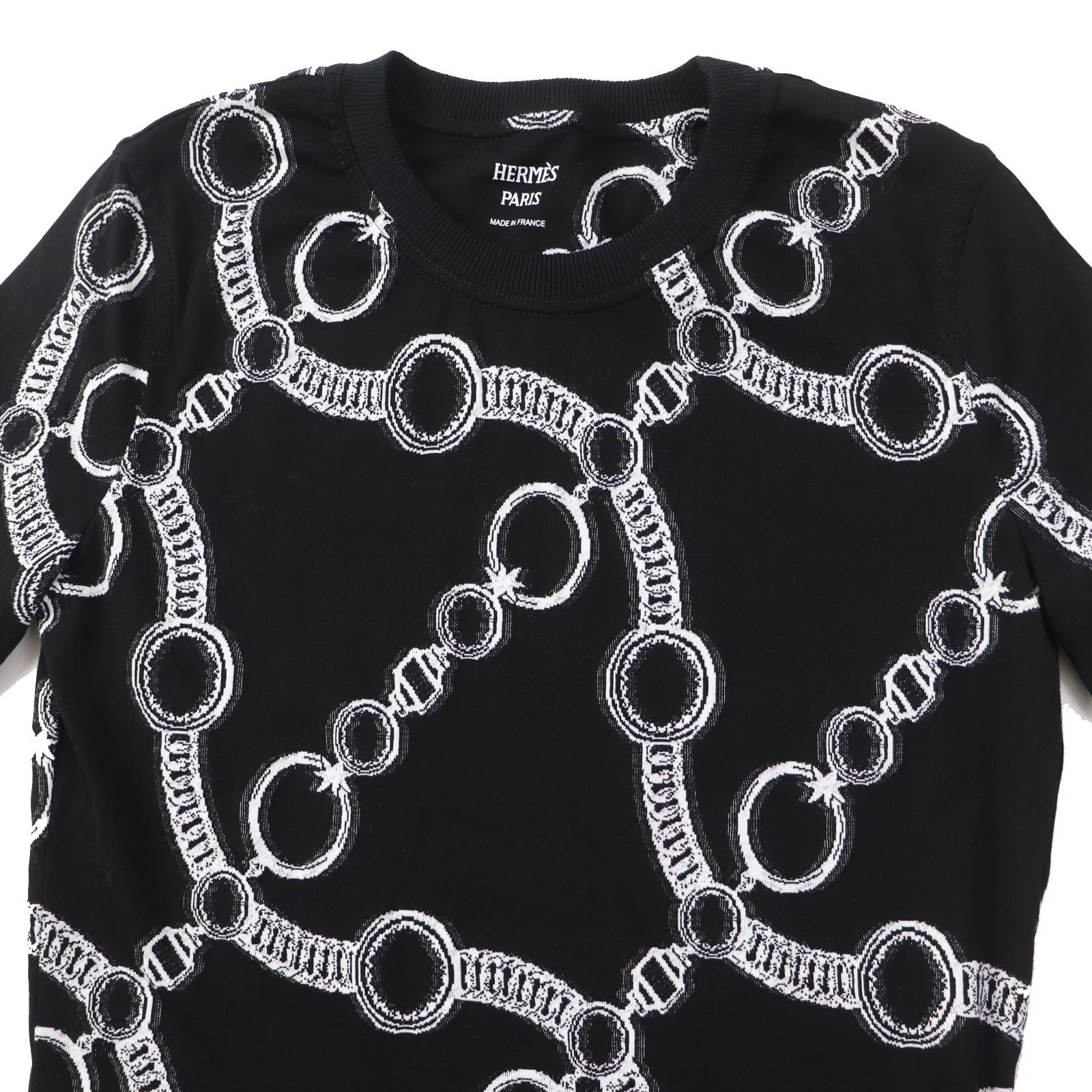 HERMES Short sleeve T-shirt 2E4600D2 Main: 100% cotton, Rib part: 82% cotton, 17% nylon, 1% polyurethane Black White Nadge Chain Women 34 Used Authentic