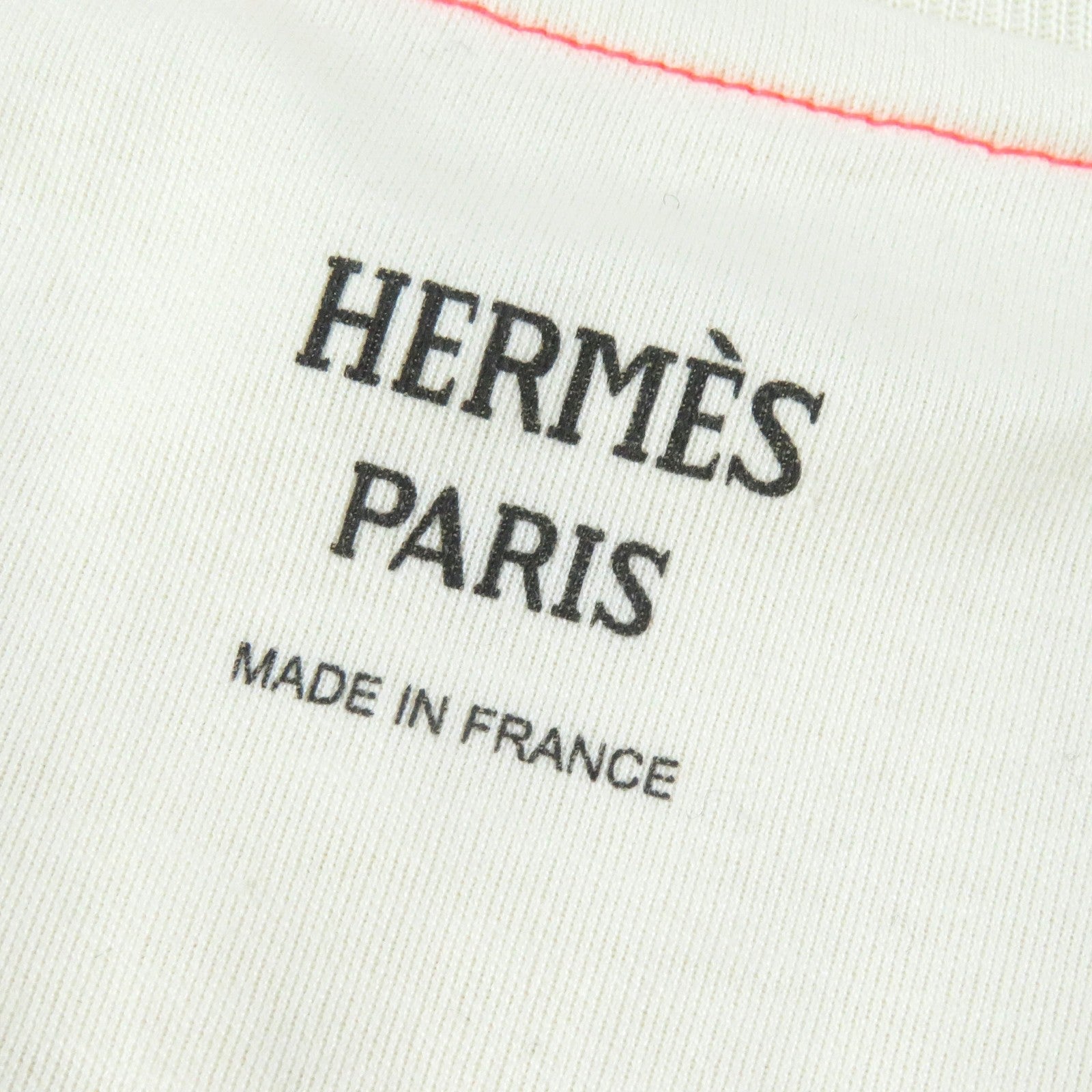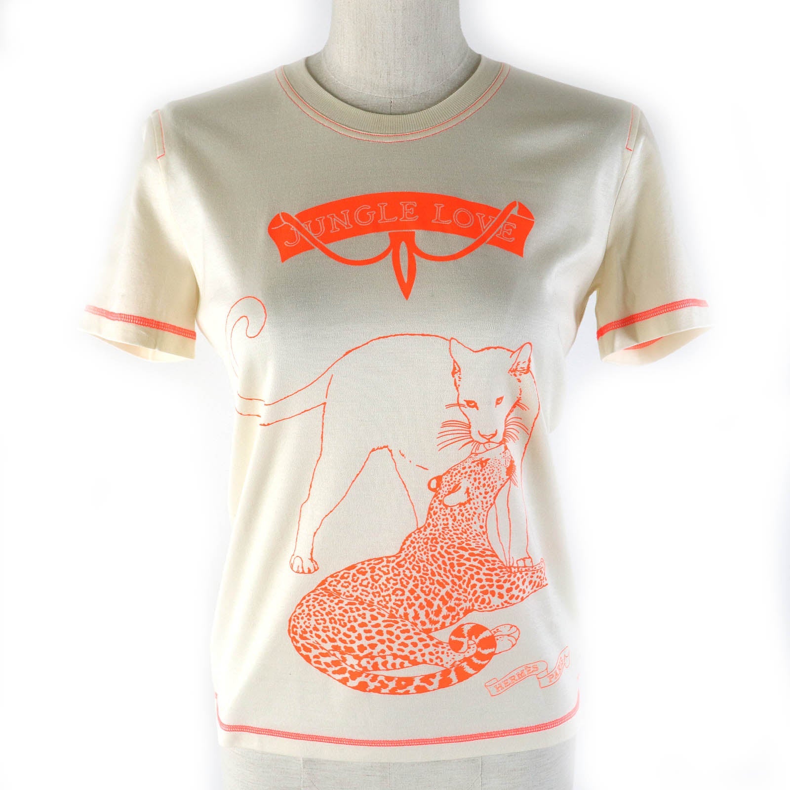 HERMES Short sleeve T-shirt 2H4616DH Main: 100% cotton Light Beige Neon Orange Jungle love Women 34 Used Authentic