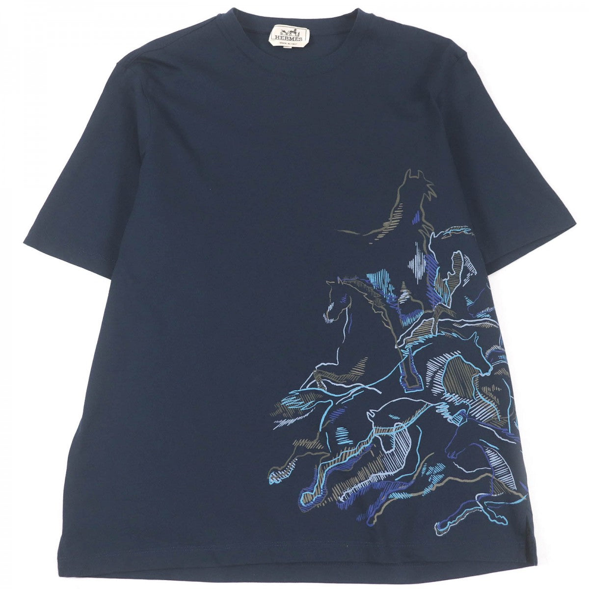 HERMES Short sleeve T-shirt Main: 100% cotton Navy caval card mens M Used Authentic