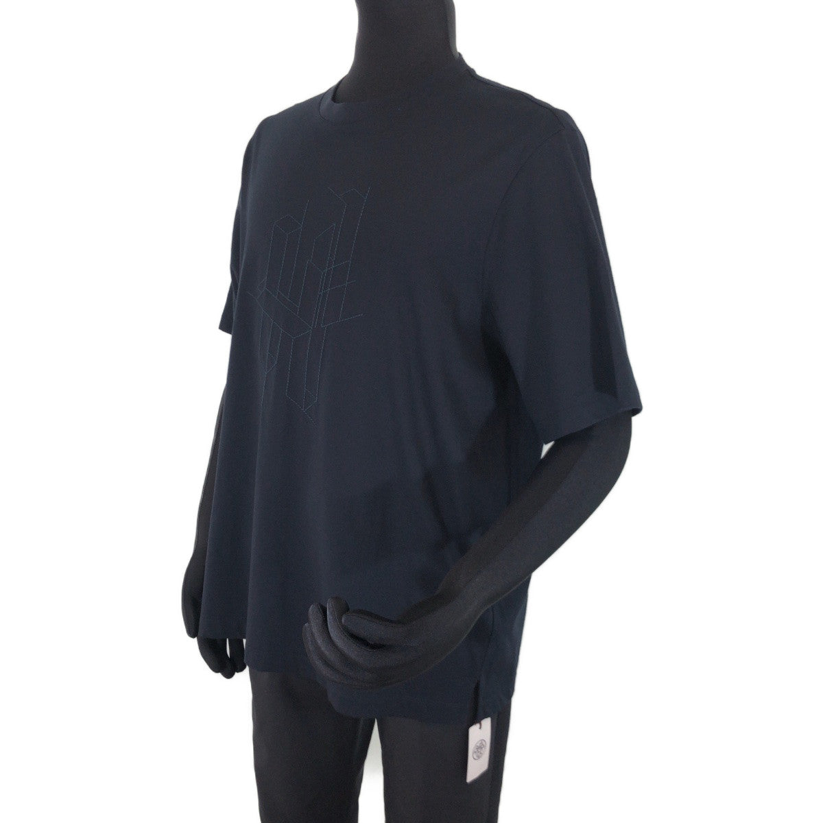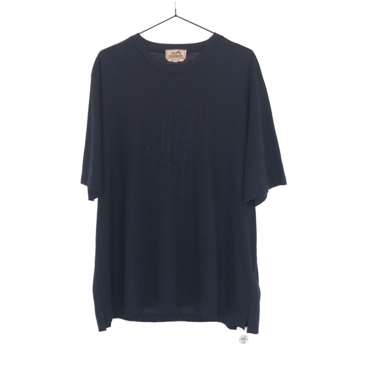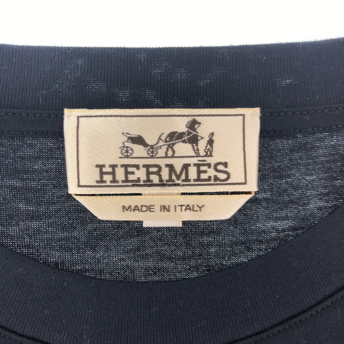 HERMES Short sleeve T-shirt cotton Navy navy blue Short Sleeve Shirts T-Shirts H logo embroidery mens XL Used Authentic