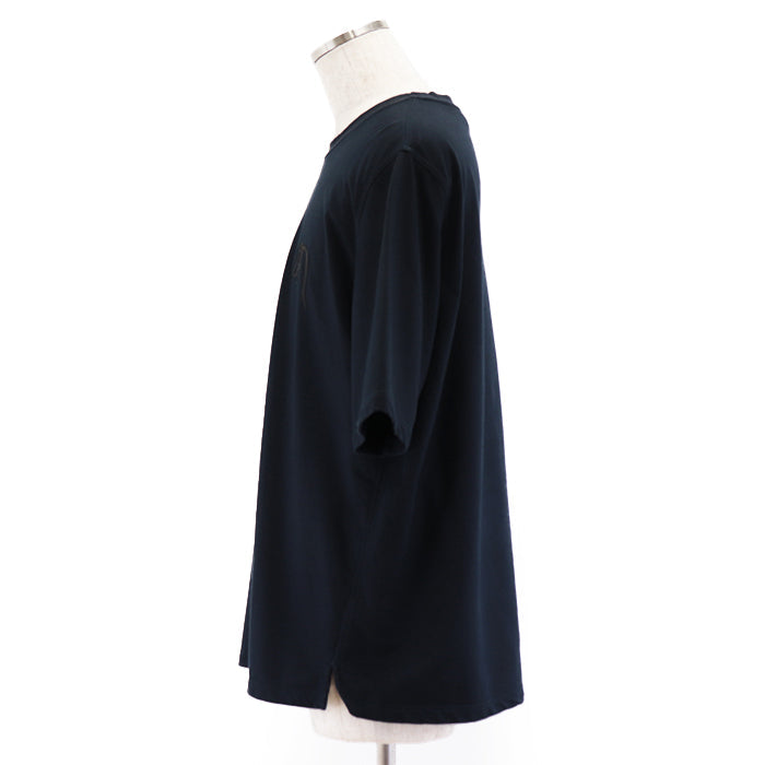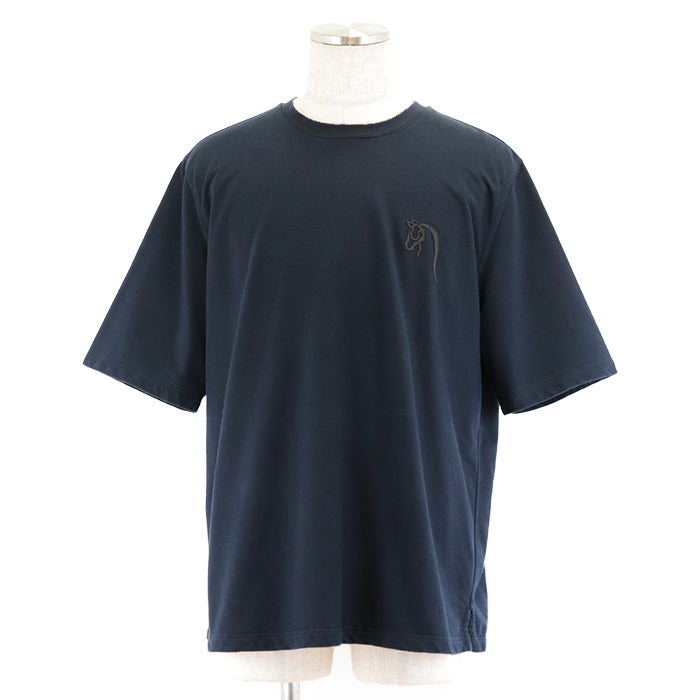 HERMES Short sleeve T-shirt 100% cotton [Rib] 81% cotton, 19% polyurethane [Leather part] Sheepskin Navy mens XXL Used Authentic