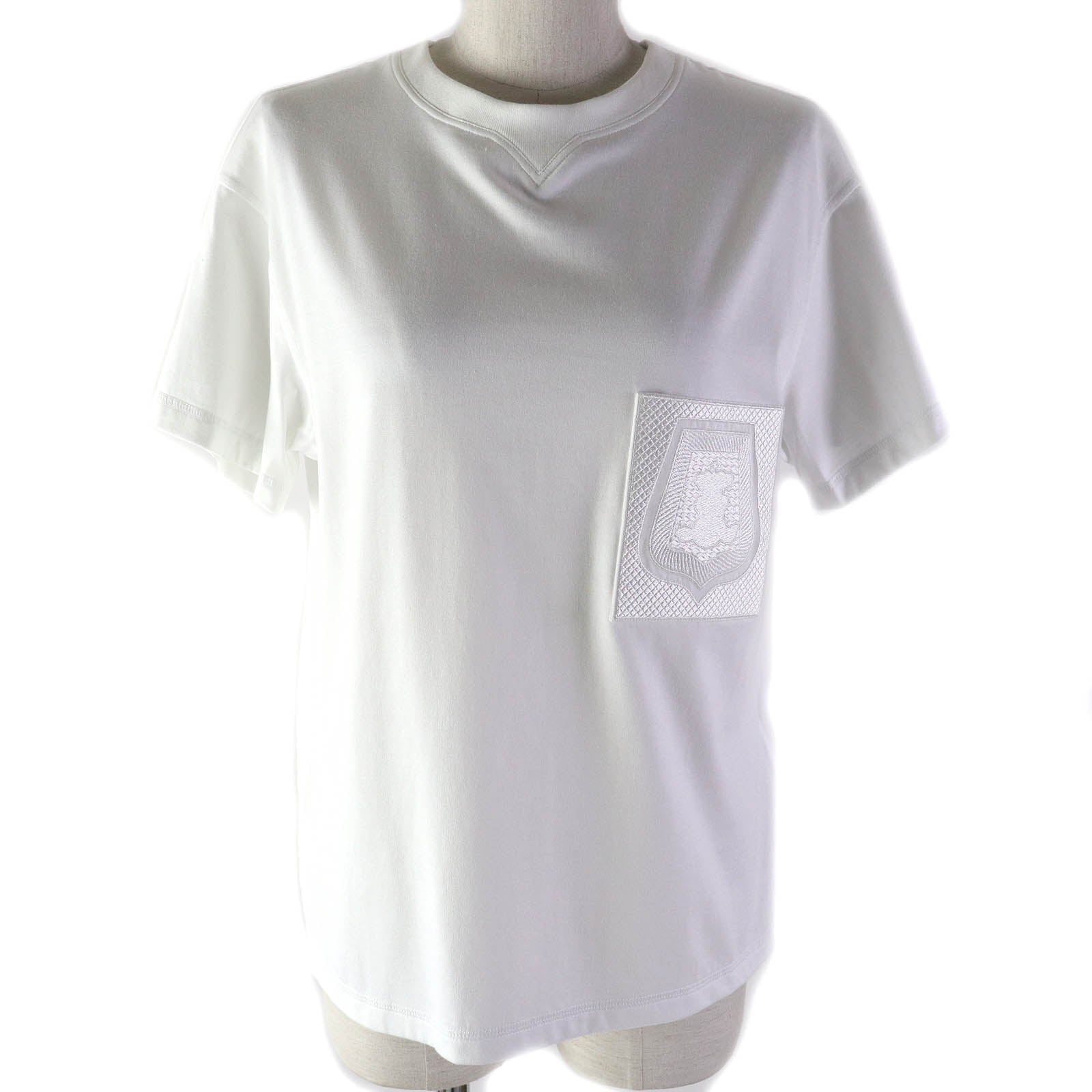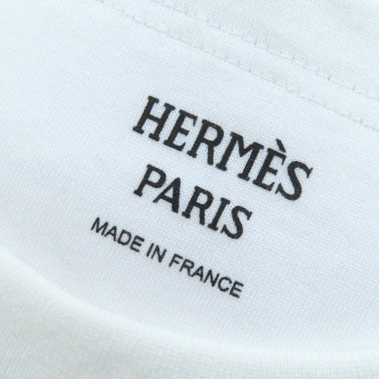 HERMES Short sleeve T-shirt Main: 100% cotton, Rib: 76% cotton, 26% nylon, 4% polyurethane, Embroidery: 100% polyester white Women 38 Used Authentic