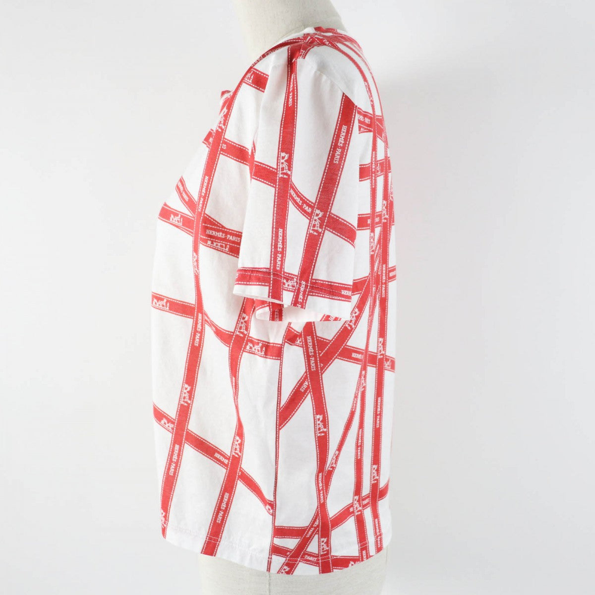 HERMES Short sleeve T-shirt Main: 100% cotton White red Margiela period Bolduc Ribbon Pattern Women Used Authentic
