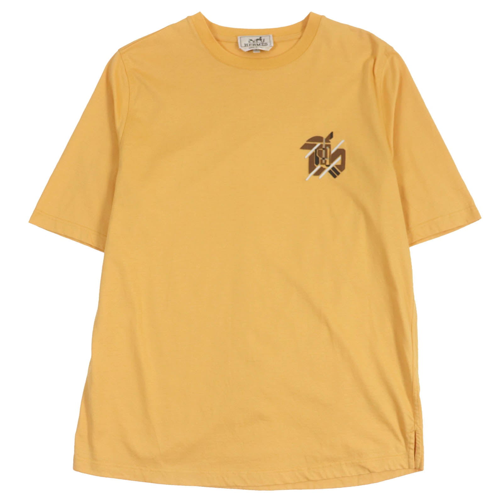 HERMES Short sleeve T-shirt H357925 Main: 100% cotton, some parts: sheep leather Orange Chevaux en symmetry mens S Used Authentic