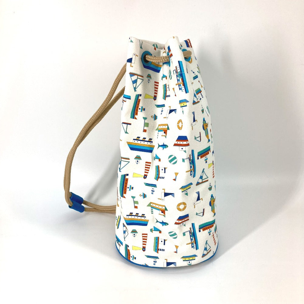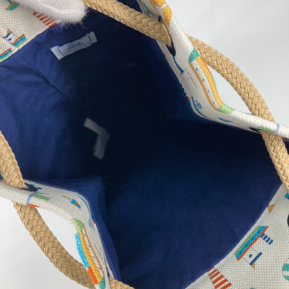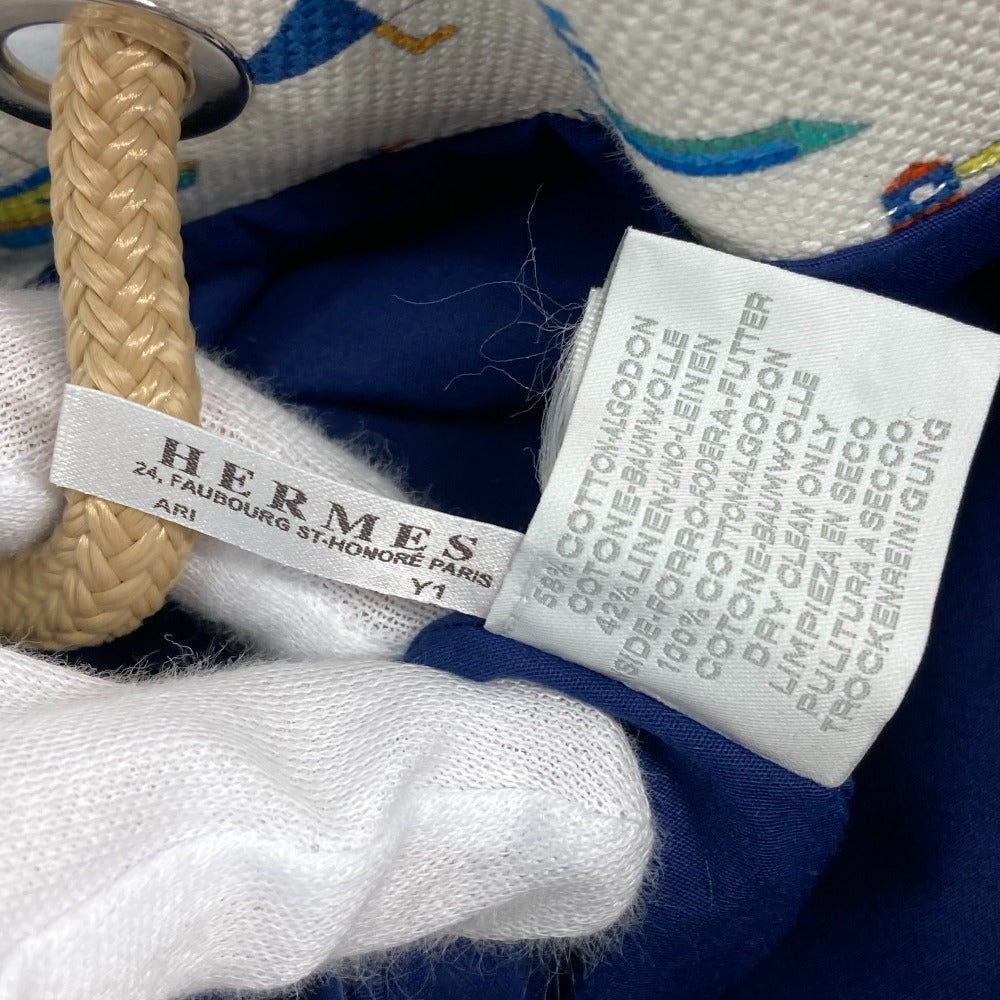 HERMES Shoulder Bag cotton White x blue marine print Petit Chartier Kids Used Authentic