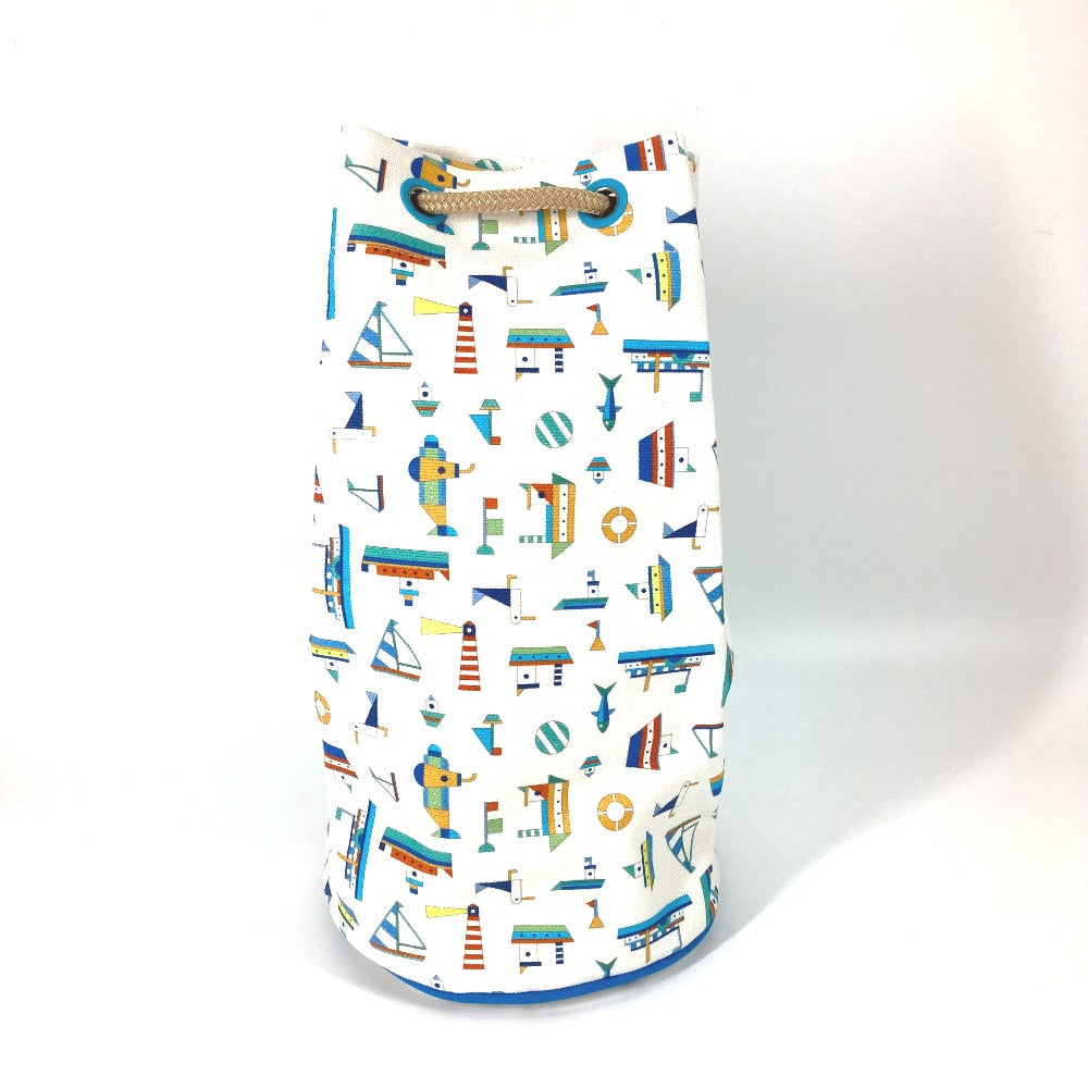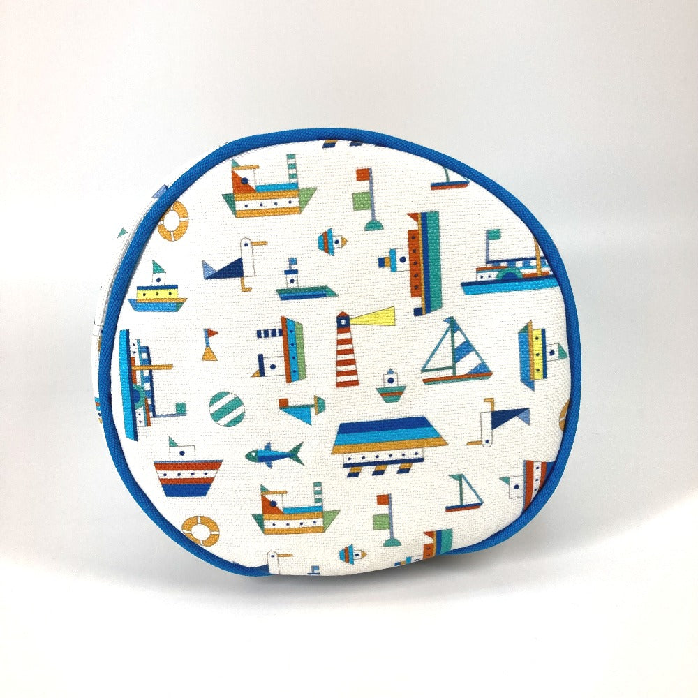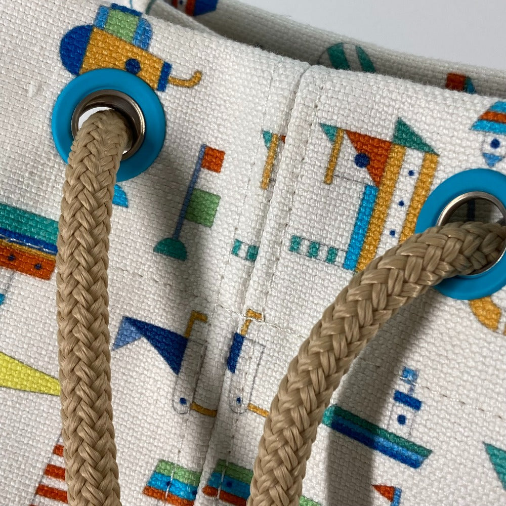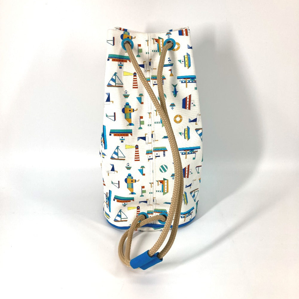 HERMES Shoulder Bag cotton White x blue marine print Petit Chartier Kids Used Authentic