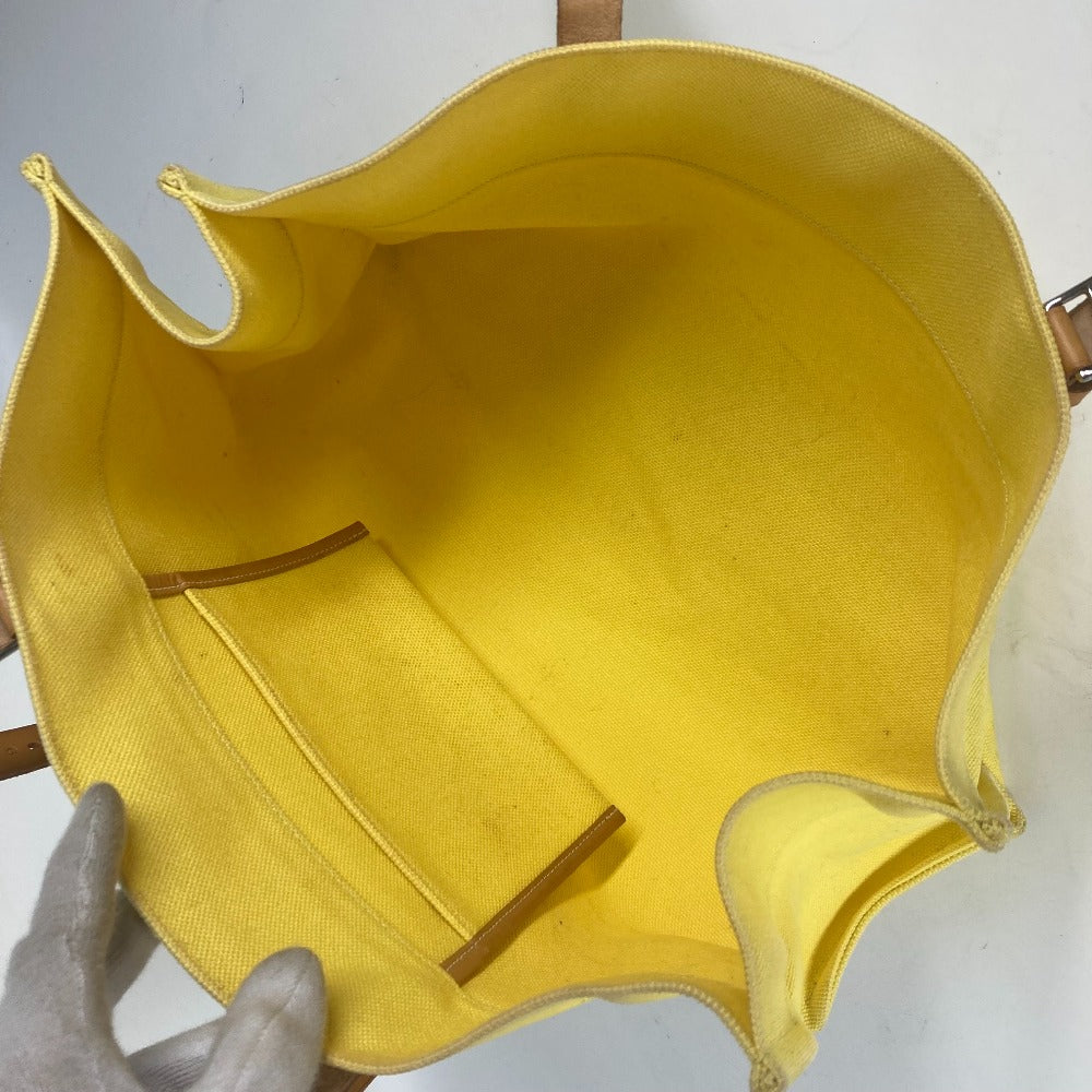 HERMES Shoulder Bag Leather / canvas yellow Etrivire Elan Women Used Authentic