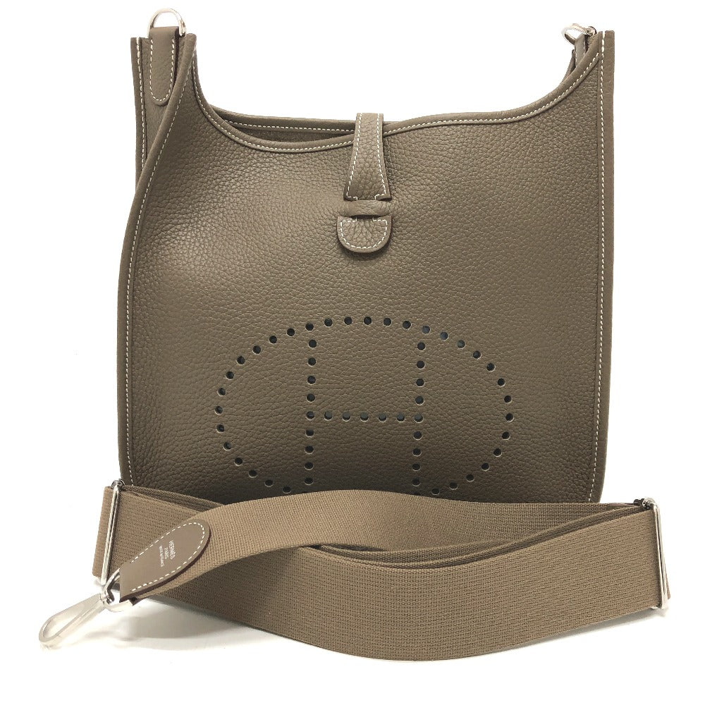 HERMES Shoulder Bag Taurillon Clemence Brown Evelyn 3PM Trois Women Used Authentic