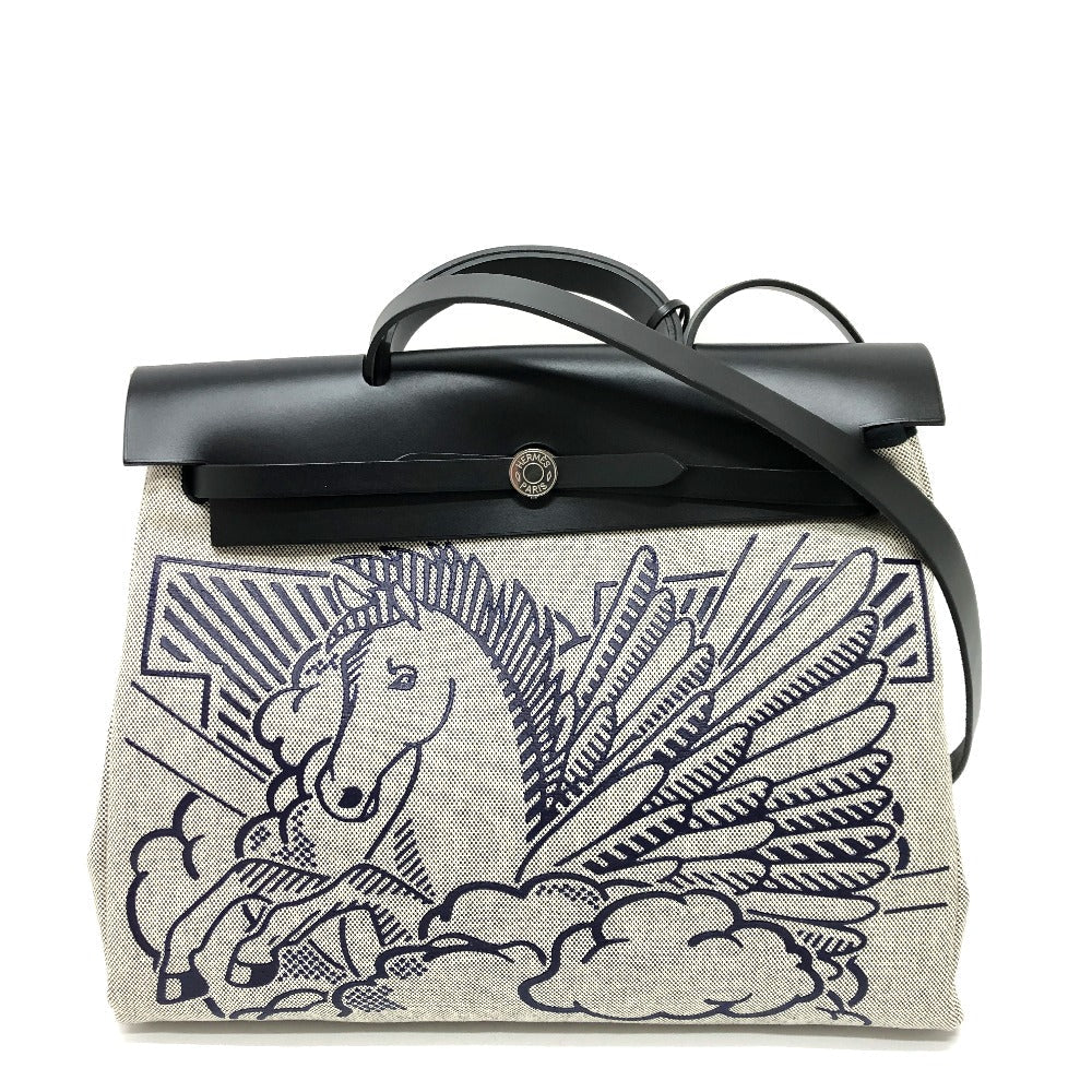 HERMES Shoulder Bag Toile H, Leather Navy Herbag Zip MM Pegasus pop Women Used Authentic