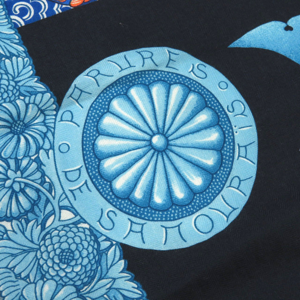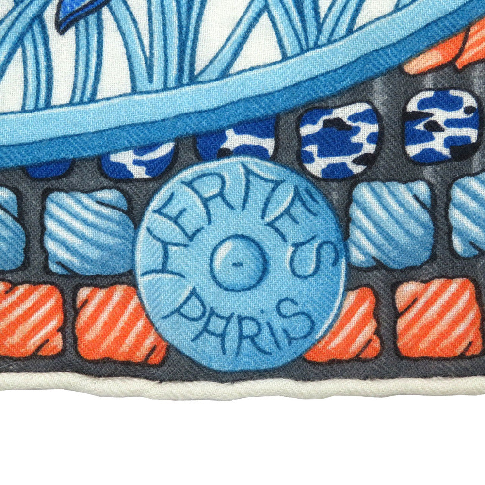 HERMES Stall cashmere blue Carre140 Samurai Armor Helmet Parures de Samourais Women Used Authentic