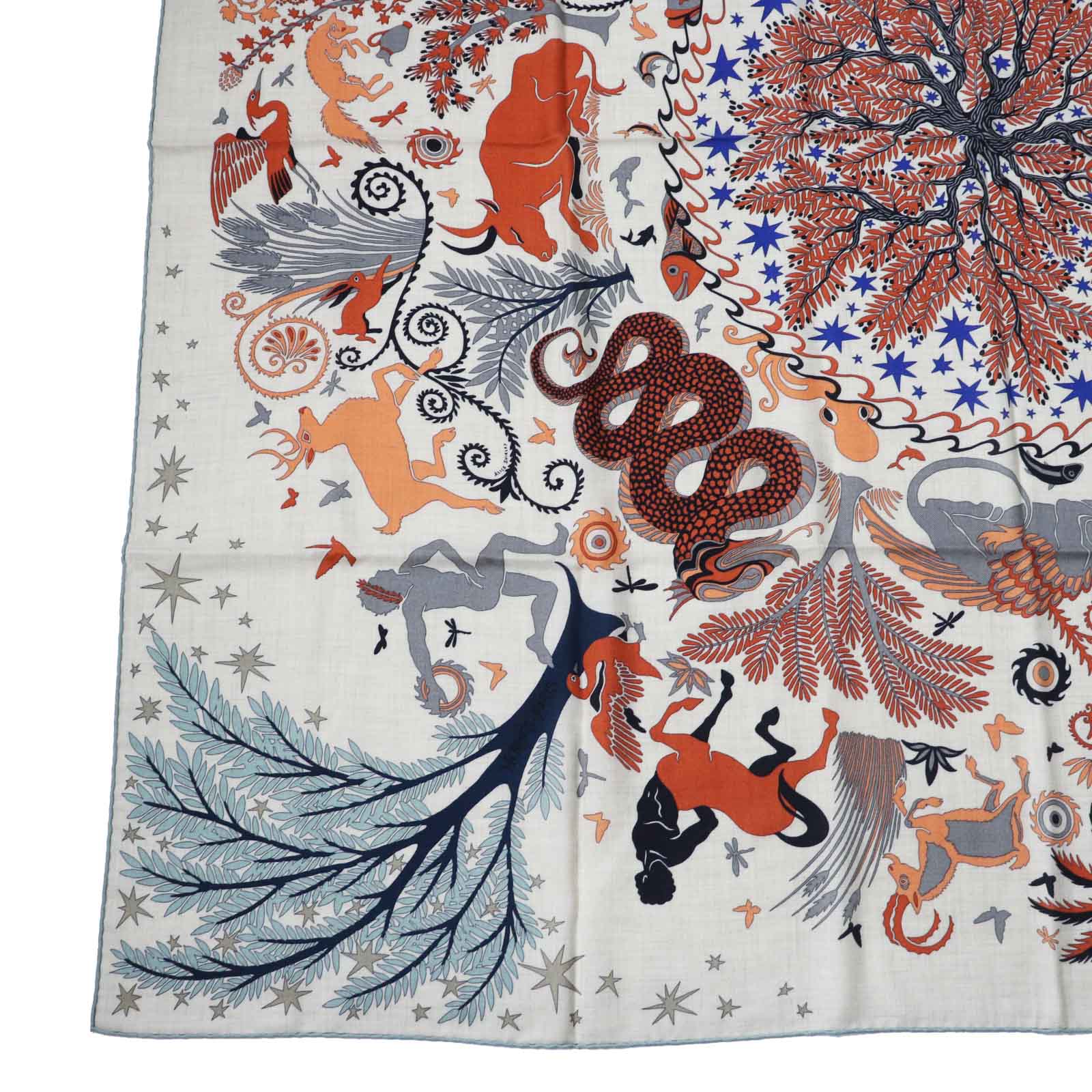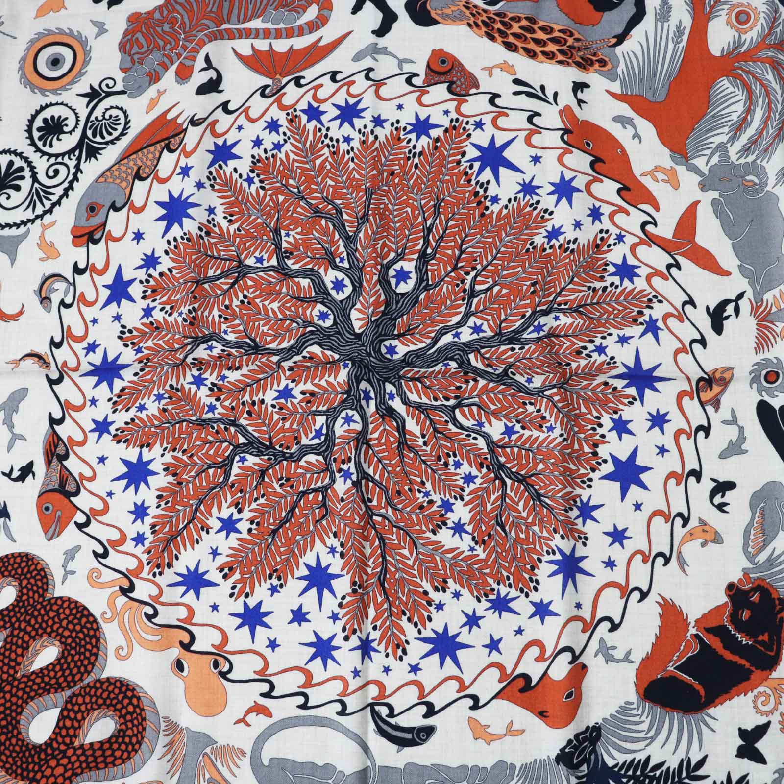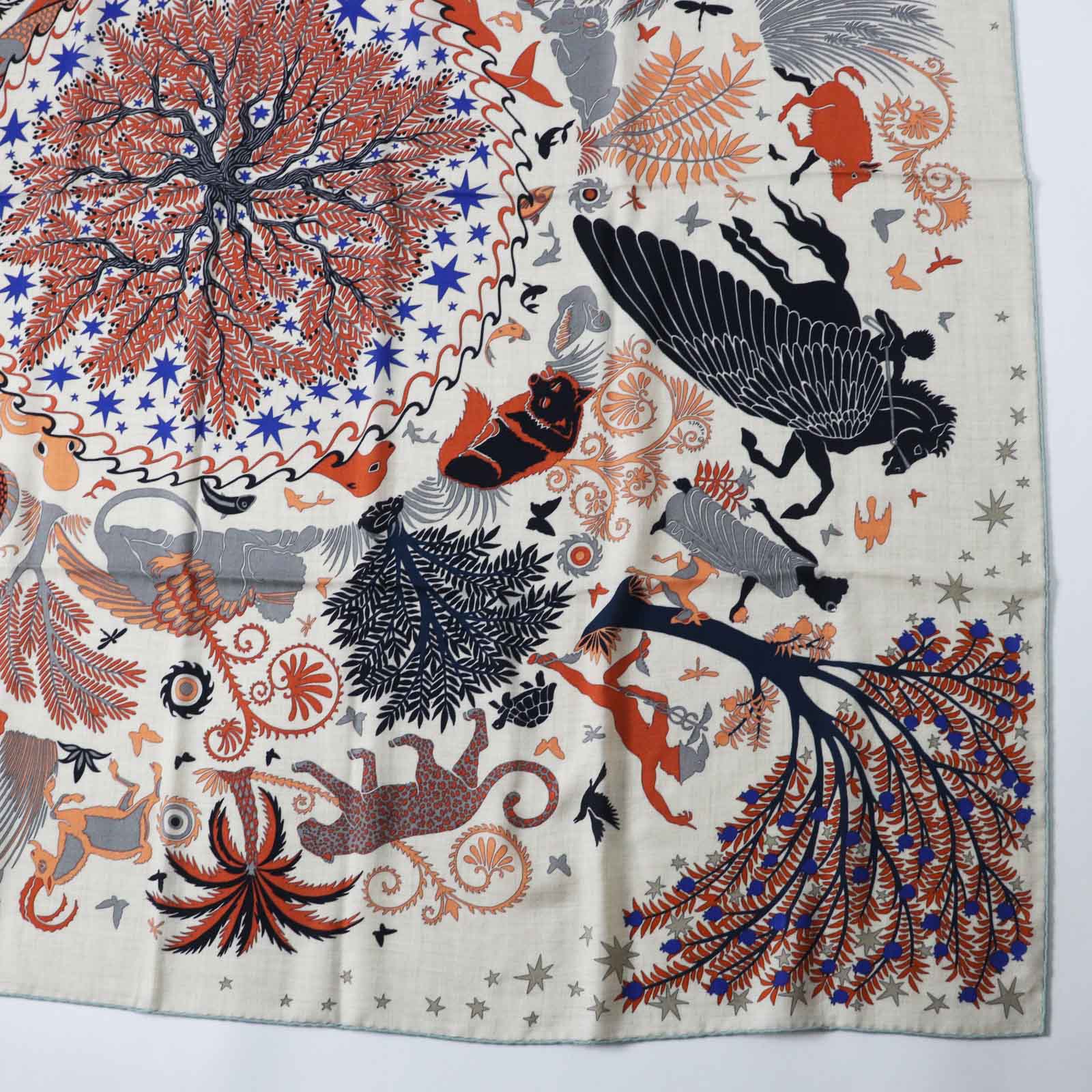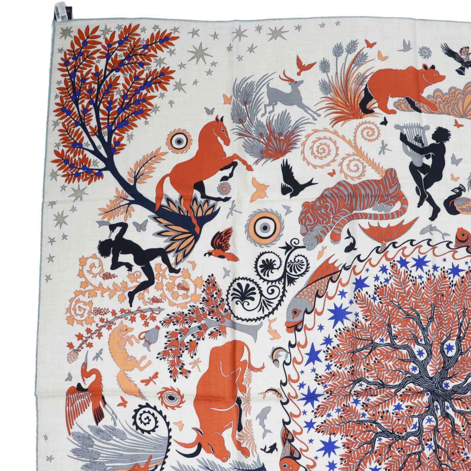 HERMES Stall Main: 70% cashmere, Main: 30% silk Terracotta White Carre140 Caregean Under the Charm of Orpheus Women Used Authentic