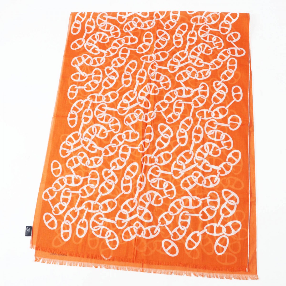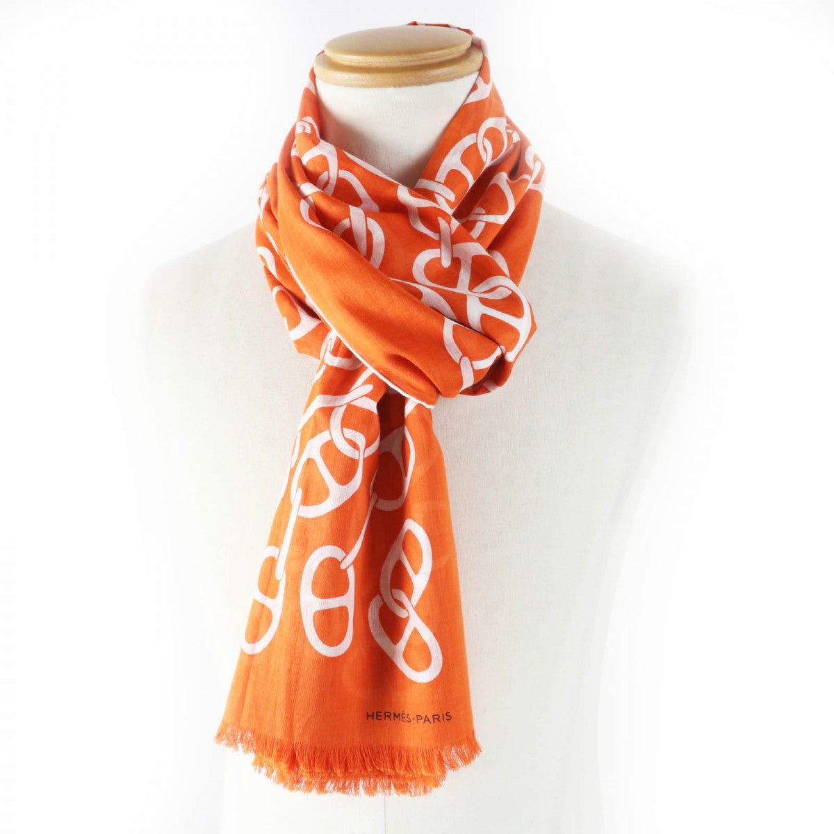 HERMES Stall Main: 100% cotton Orange Boite Naoussa Megaro mens Used Authentic