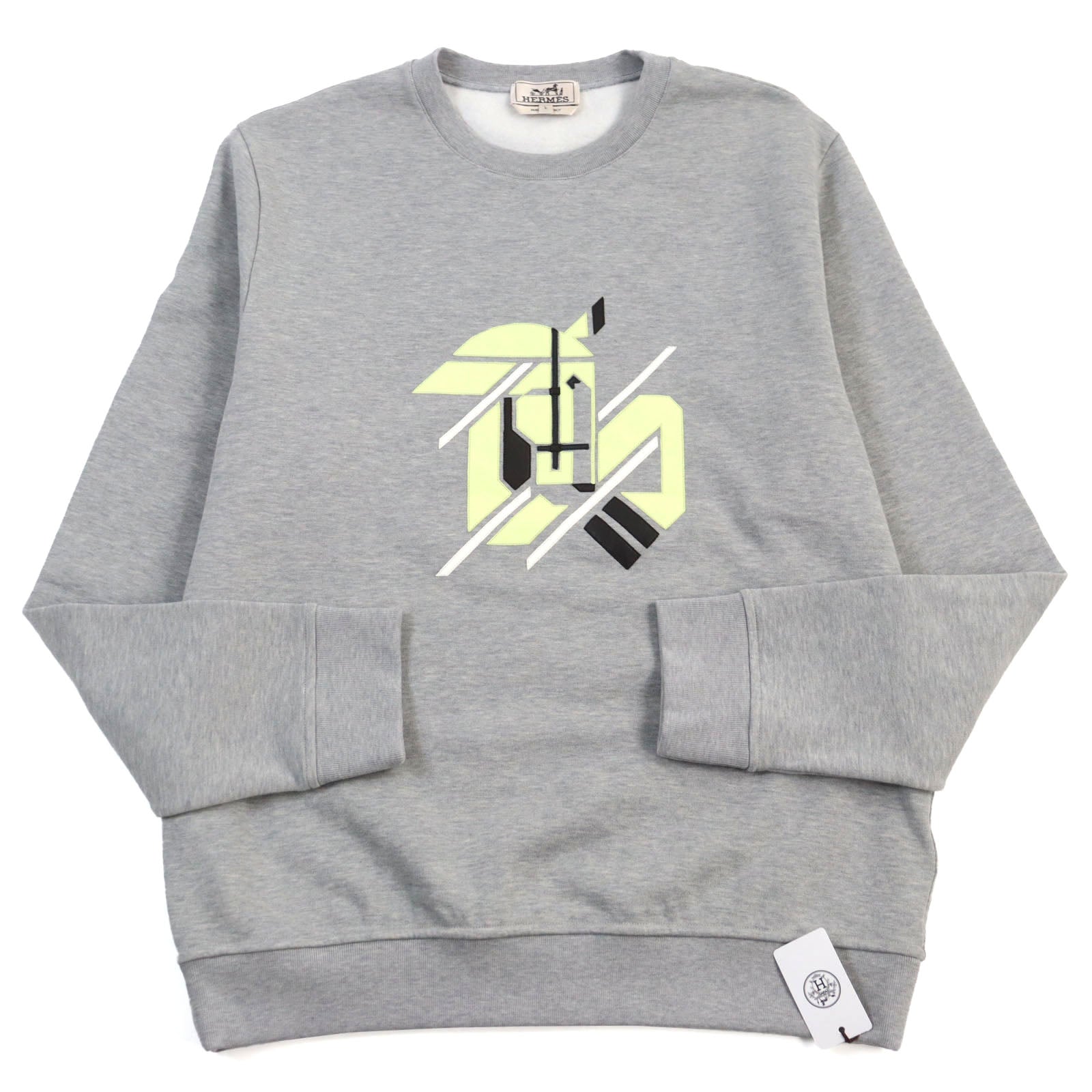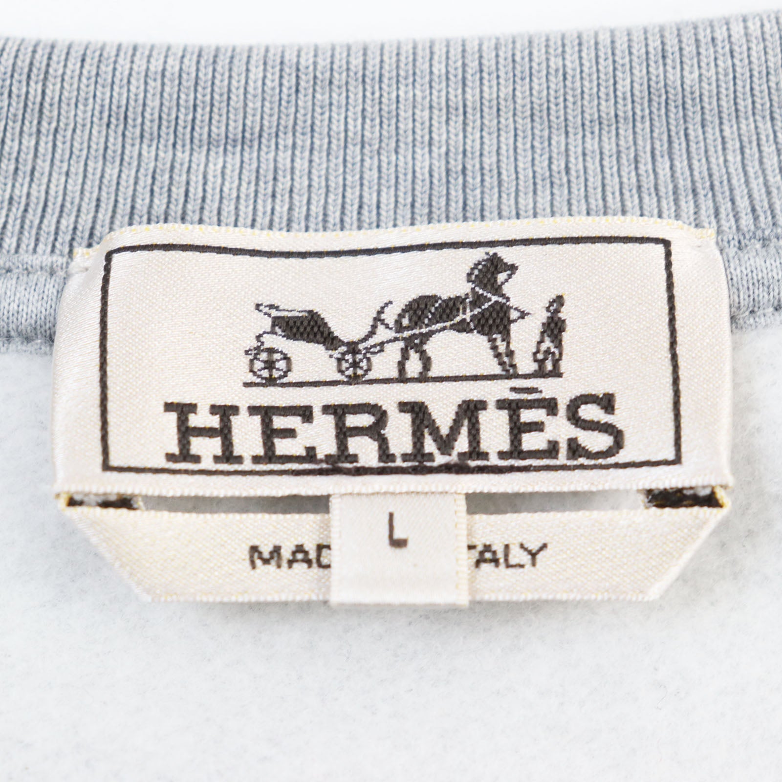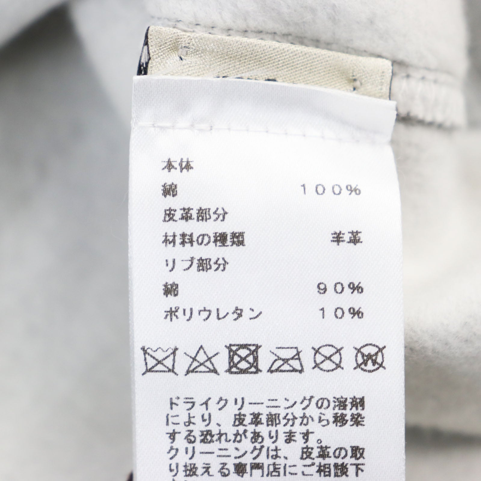 HERMES sweat 31-5765 Main: 100% cotton, Rib part: 90% cotton, 10% polyurethane, Leather part: Lamb leather gray mens L Used Authentic