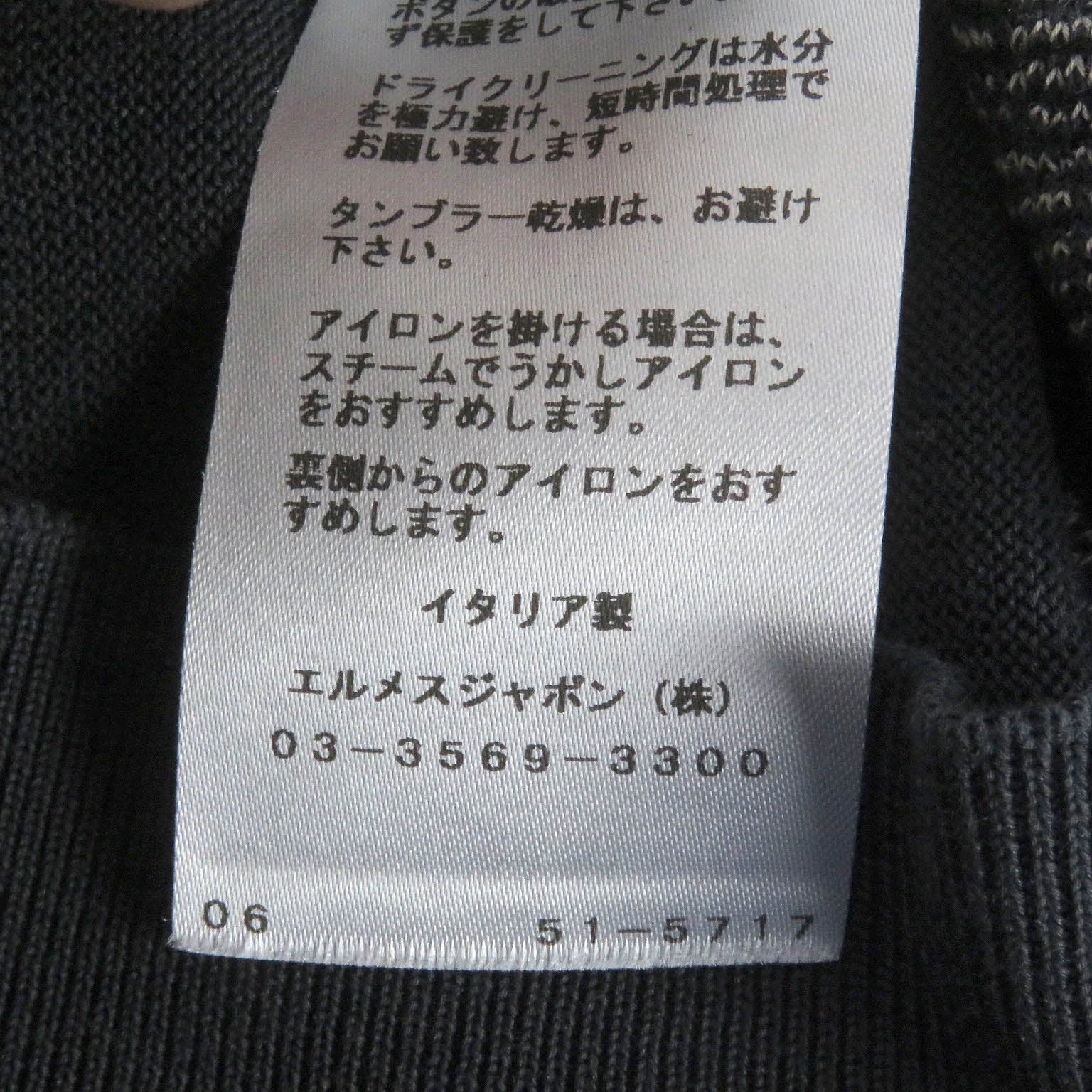 HERMES sweater Main: 100% cotton charcoal mens S Used Authentic