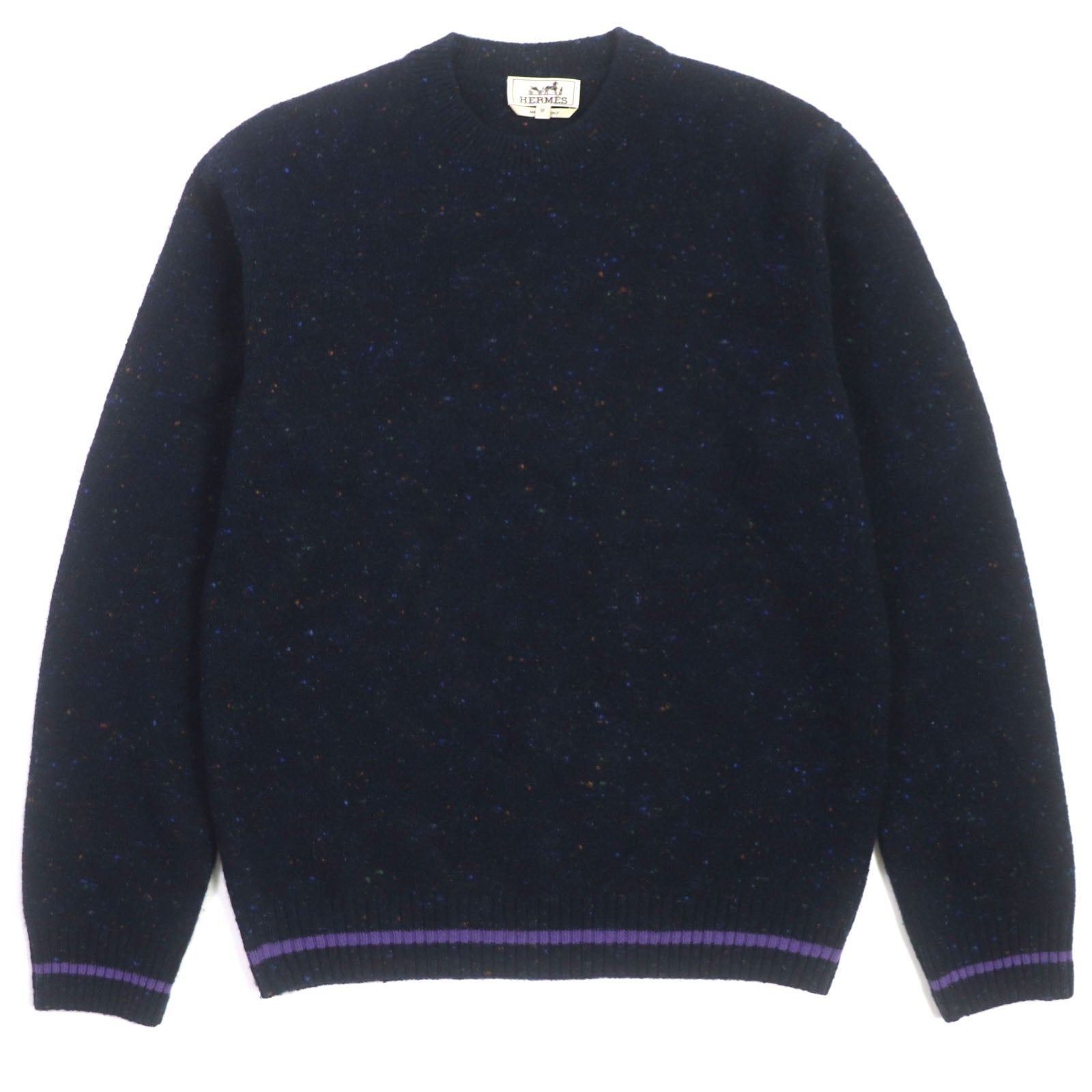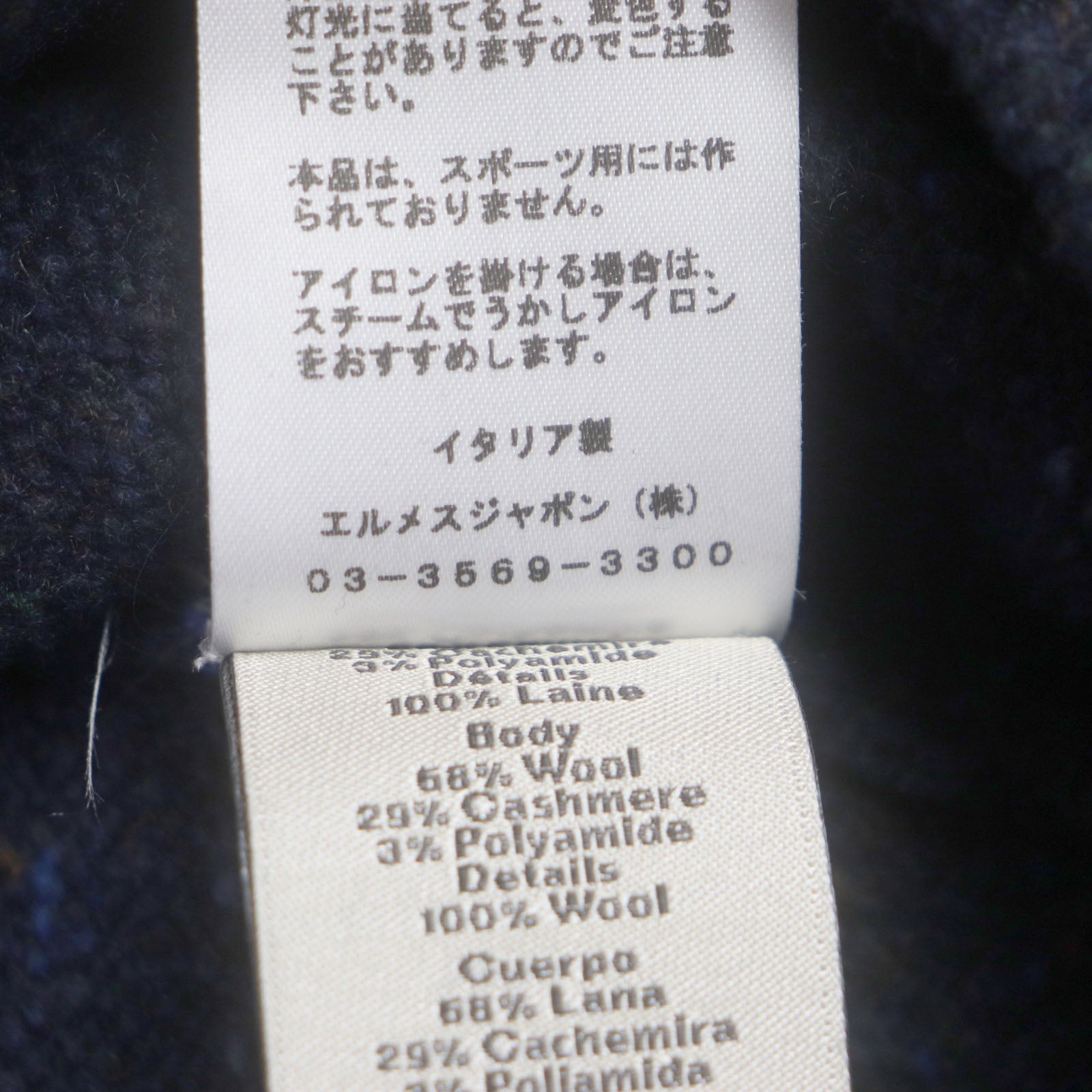 HERMES sweater Main: 68% wool, Main: 29% cashmere, Main: 3% nylon, Decoration: 100% wool Navy mens M Used Authentic