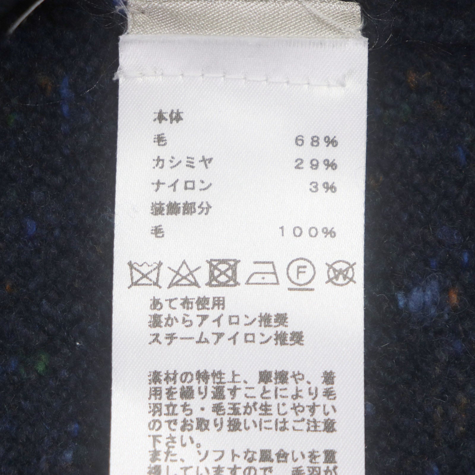 Material Main: 68% wool, Main: 29% cashmere, Main: 3% nylon, Decoration: 100% wool
