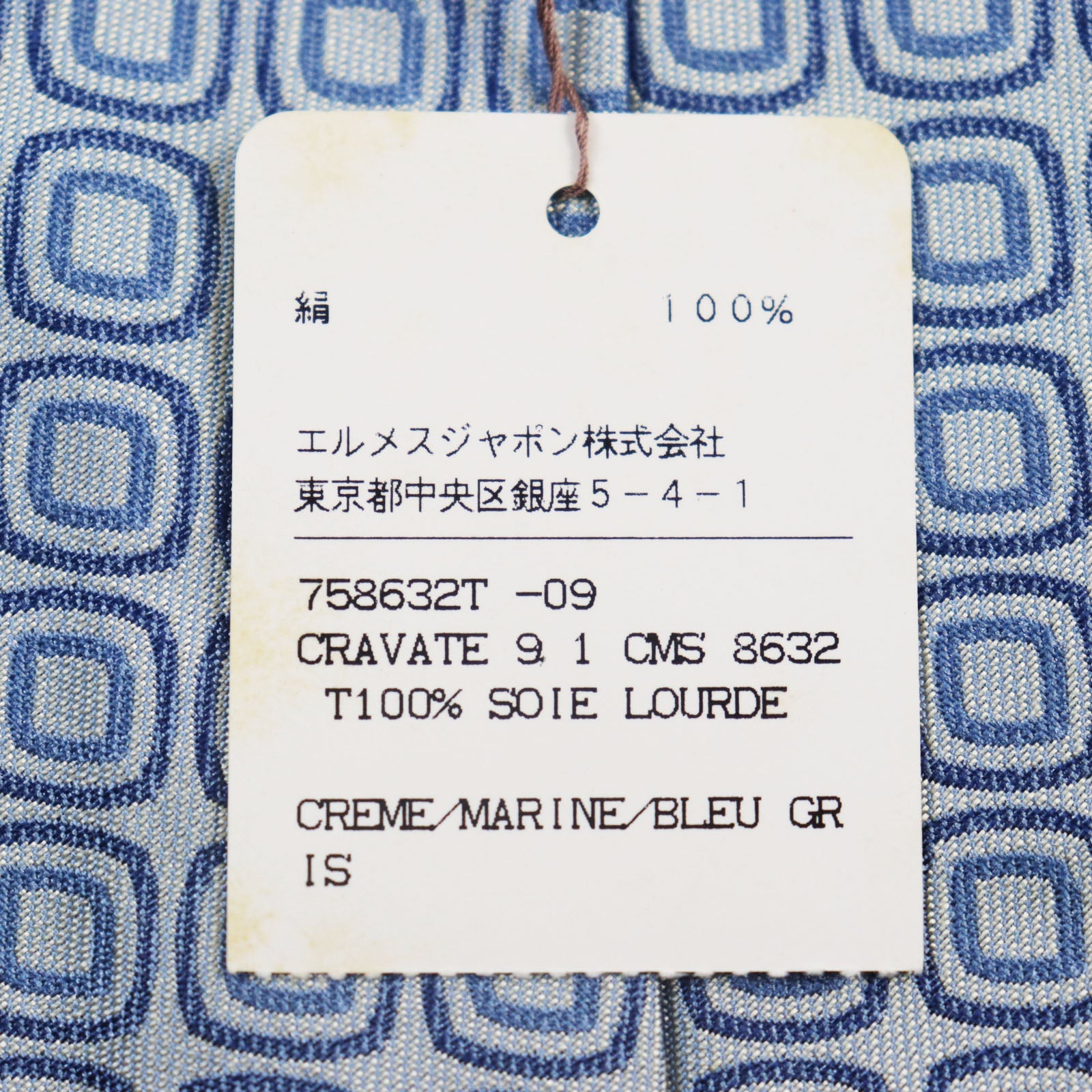 HERMES tie 758632T Main: 100% silk blue CRAVATE 9.1 mens Used Authentic