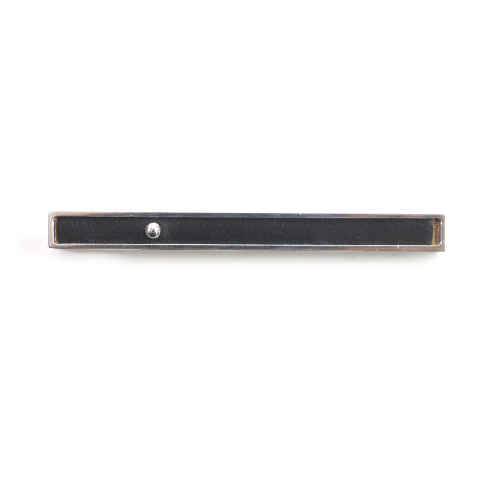 HERMES Tie pin Main: Ag925, Part: Leather Silver black Clip tie bar Square neck tie pin mens Used Authentic