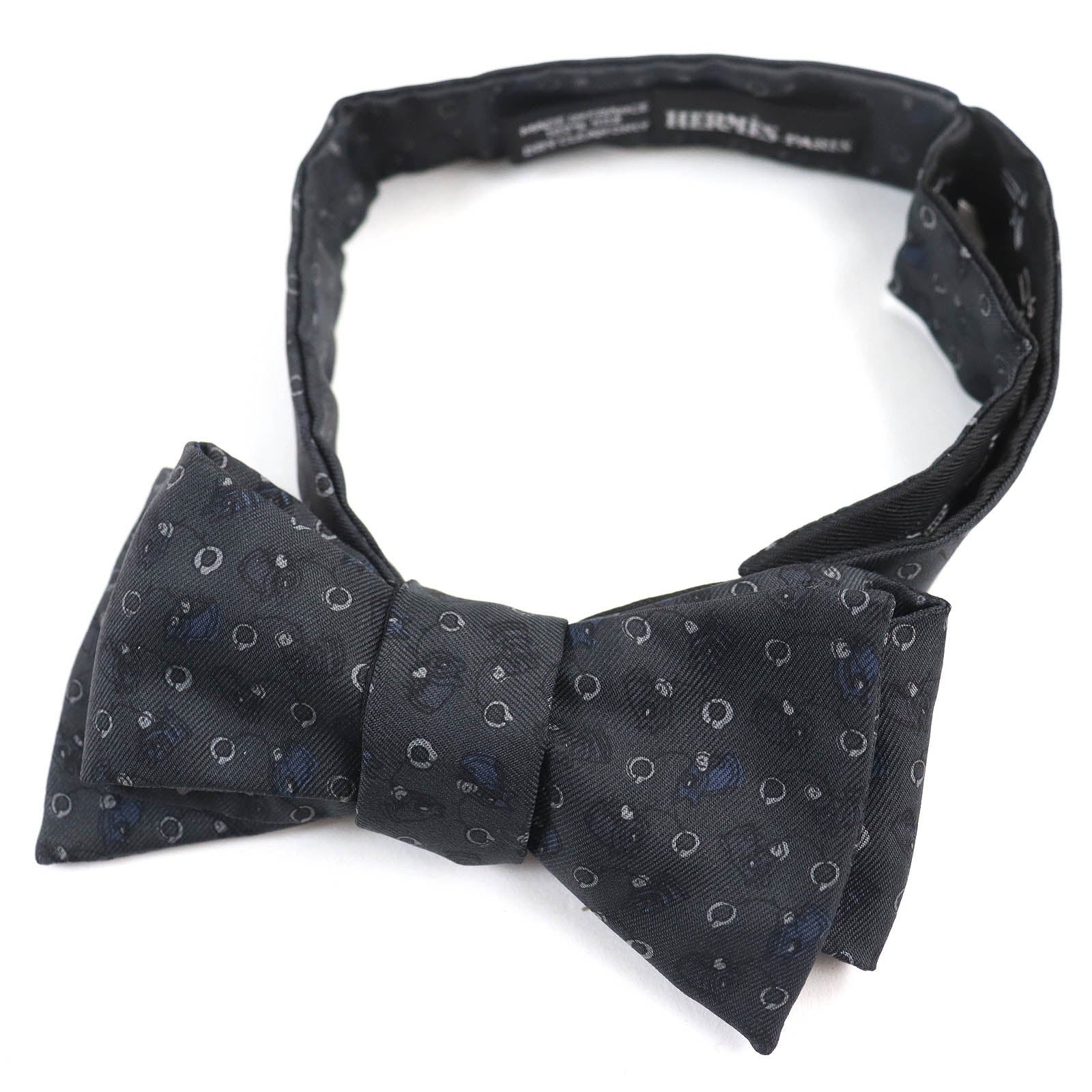 HERMES tie Main: 100% silk black NOEUD PAPILLON TWII mens Used Authentic