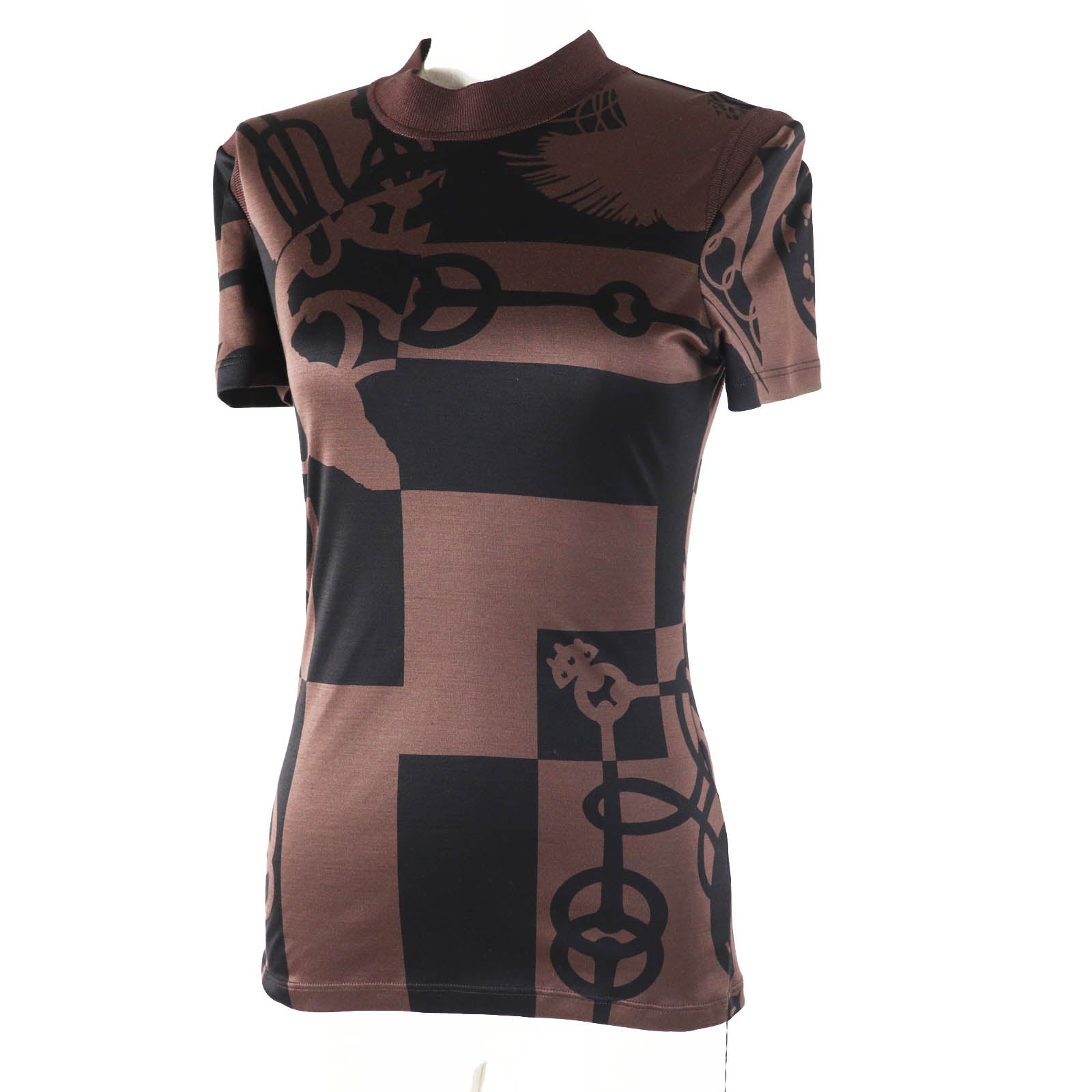 HERMES tops 2E0601DX Main: 100% silk, part: 77% silk, part: 17% nylon, part: 6% polyurethane Brown black Women 36 Used Authentic